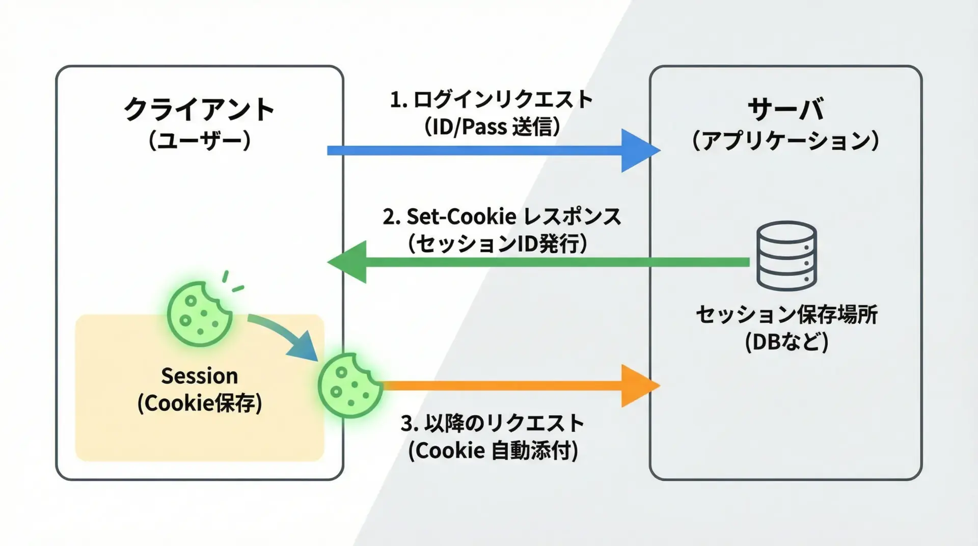 しかしSessionを使えば、一度設定してしまえば、以降のリクエストに自動的に引き継がれます。