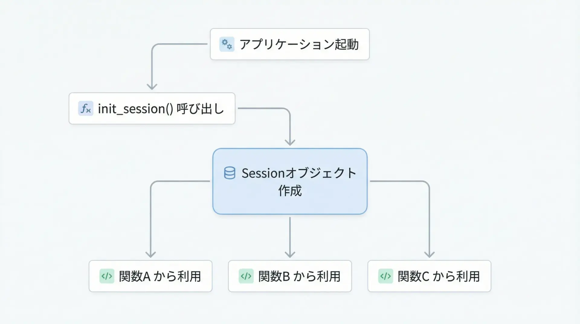 このパターンは、「ある処理ブロックの中だけでSessionを完結させたい」場合に特に有効です。