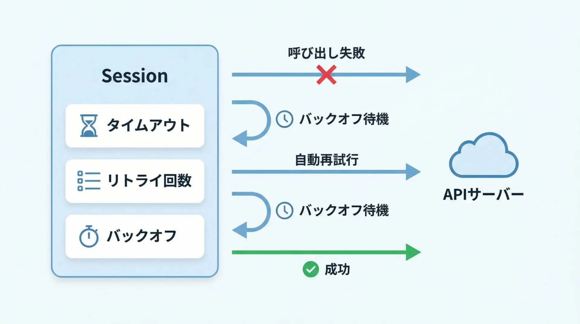 このように一度リトライ戦略を設定したSessionを使い回すことで、全てのAPI呼び出しに一貫した耐障害性を持たせることができます。