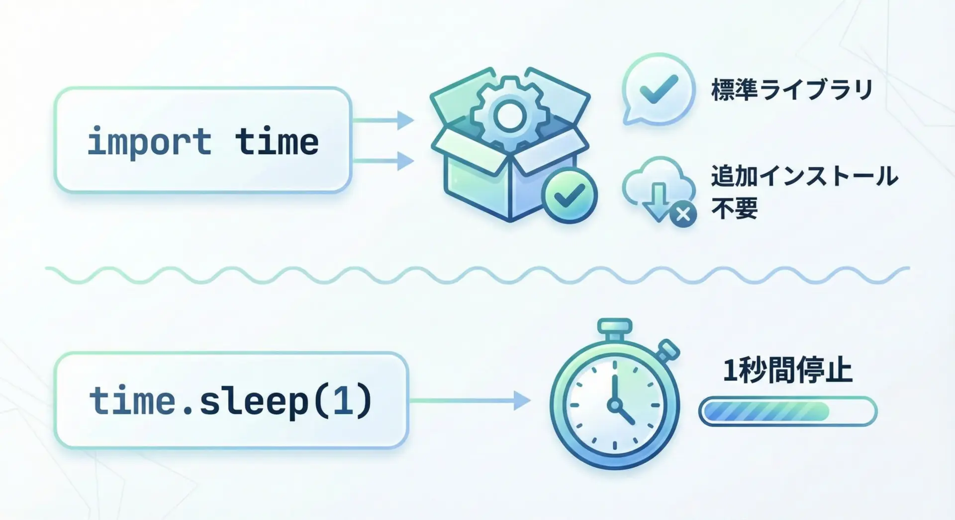 time.sleepは、Pythonで処理を一時停止させるもっとも基本的な手段です。