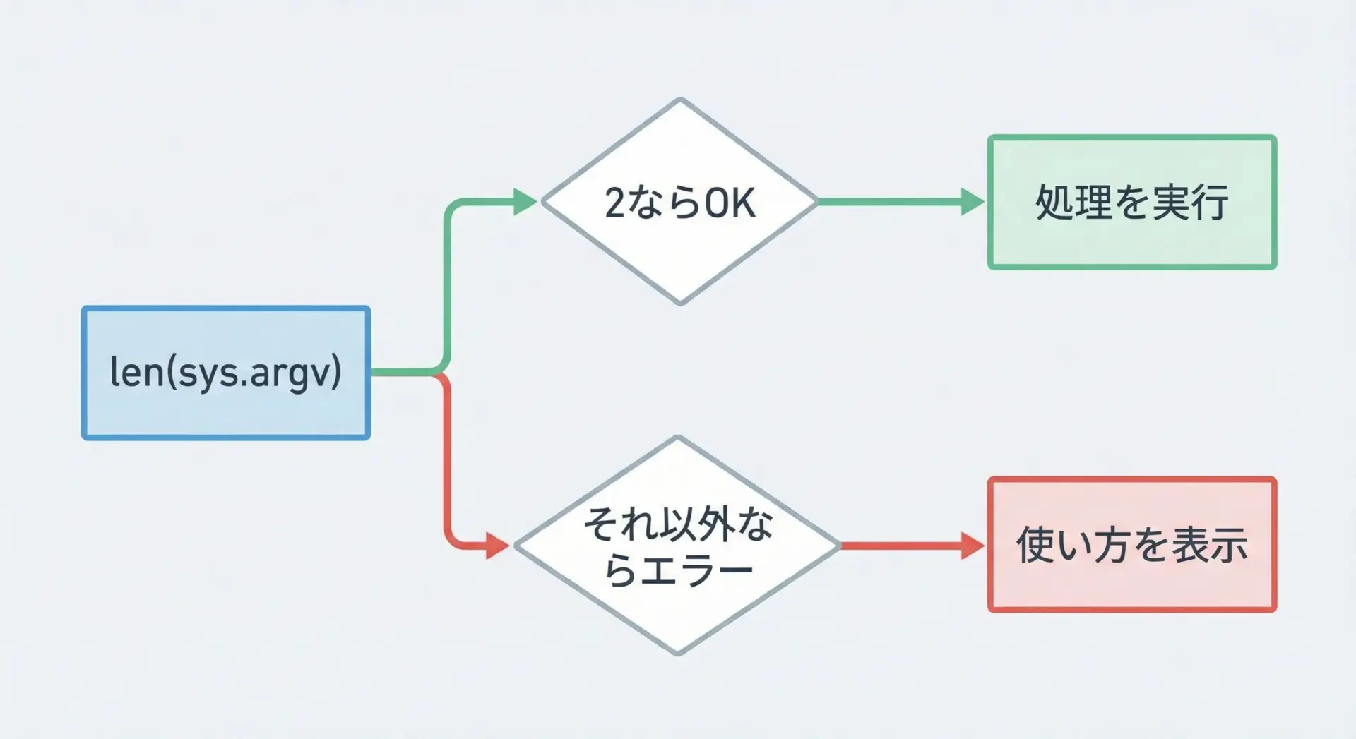 3つ目は、引数の数が足りないときに、そのままsys.argv[1]などへアクセスするとエラーになることです。