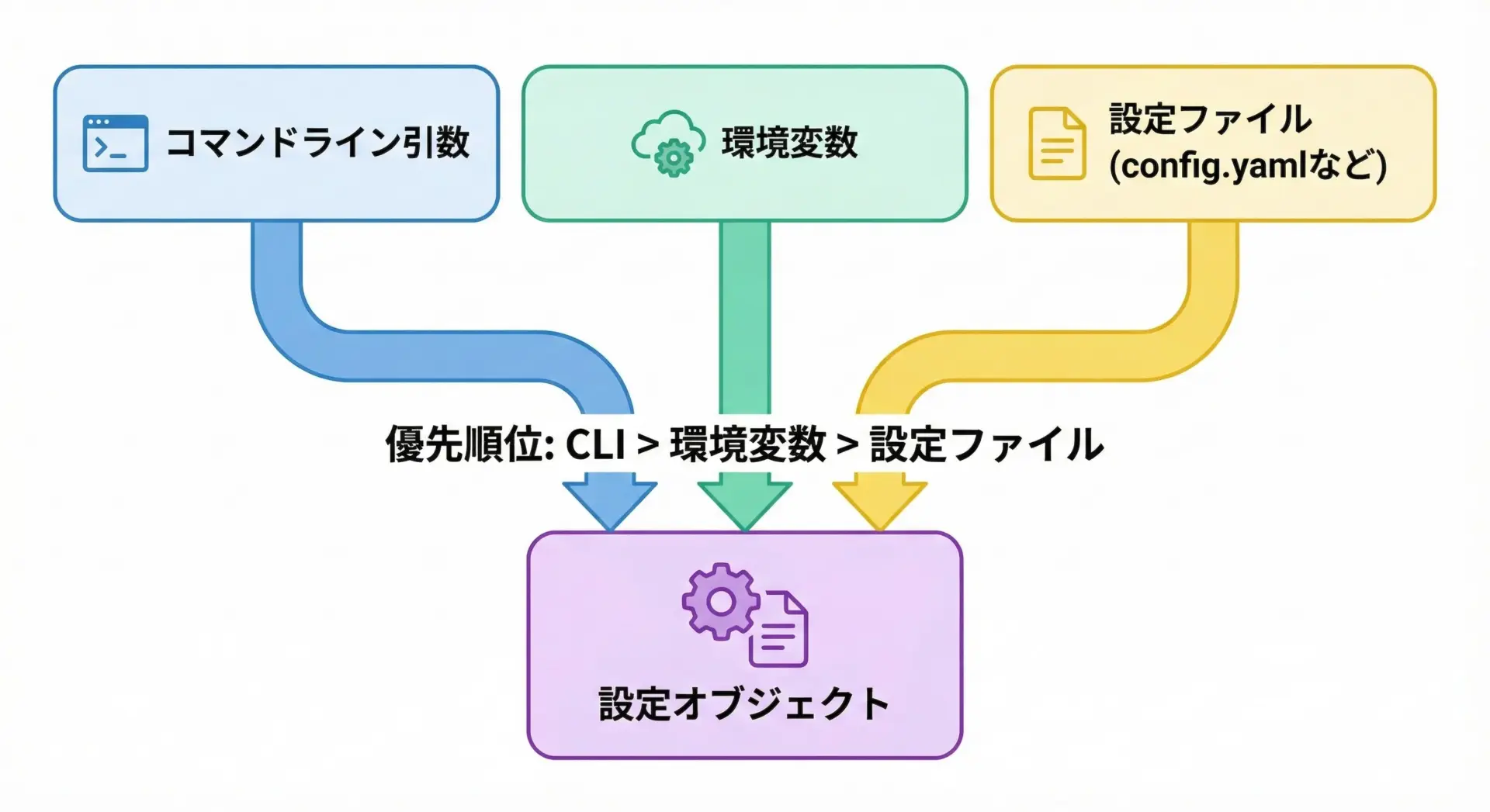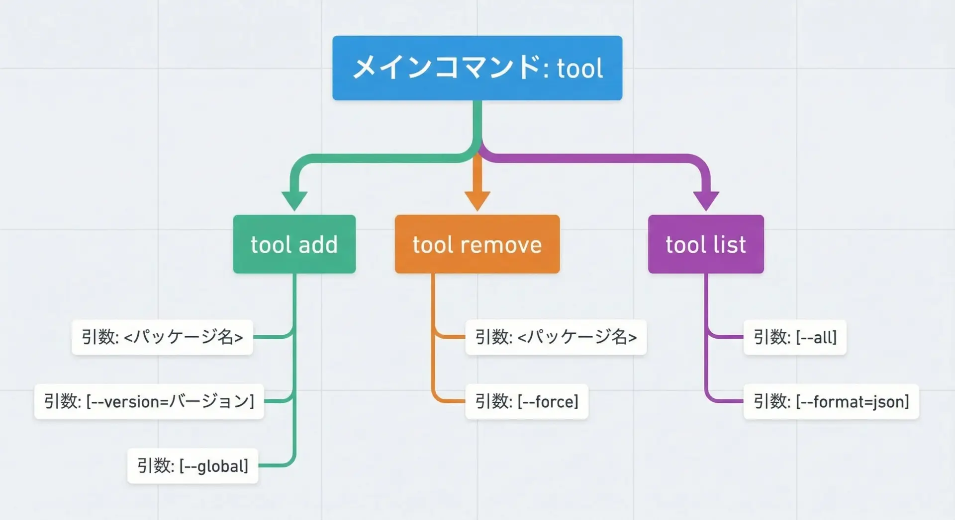 位置引数とオプション引数の基本から、型指定、必須オプション、フラグ、サブコマンド、さらには環境変数や設定ファイルとの連携まで、一度パターンを覚えてしまえばどんなCLIツールにも応用できます。