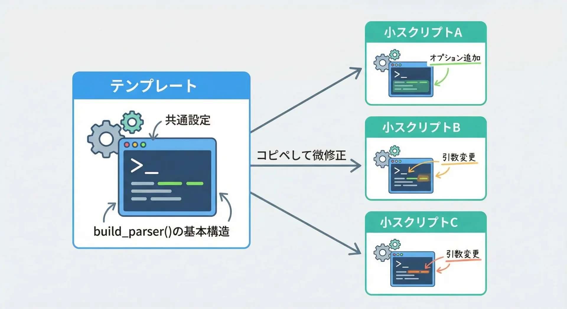 argparseを使うときの基本構造は、どのスクリプトでもほぼ共通です。
