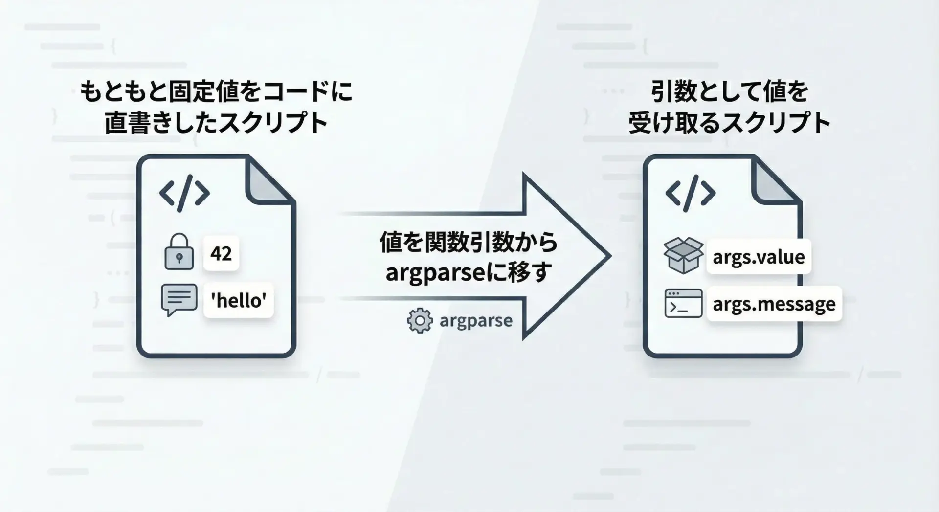 既にある「引数なしのスクリプト」をargparse対応に変えるには、次のようなステップで進めるとスムーズです。