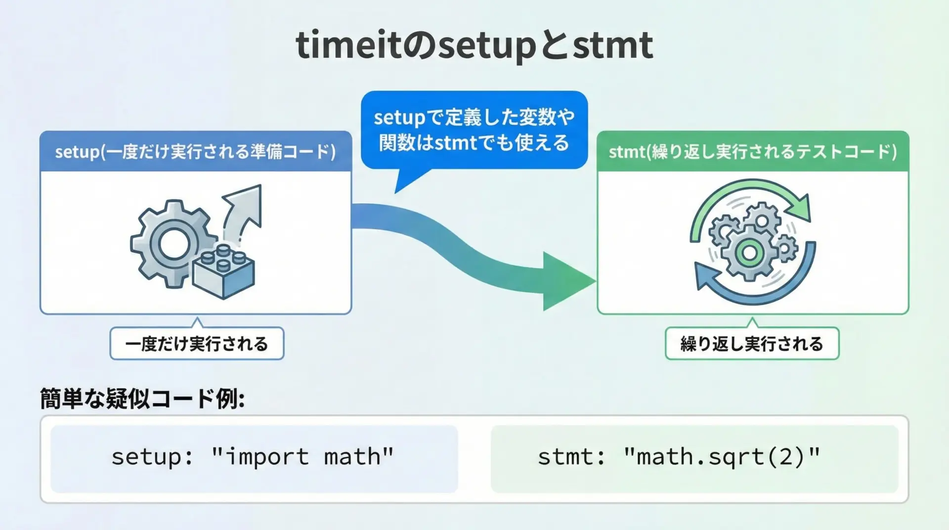 一方、timeitは繰り返し実行や統計処理を自動で行うベンチマーク専用ツールで、アルゴリズムの比較や書き方の違いを検証する際に大きな力を発揮します。