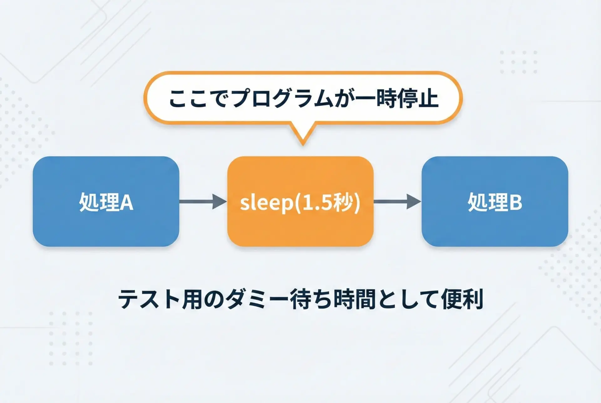 この関数は、意図的に待ち時間を作り、計測のサンプルやテストに利用することができます。
