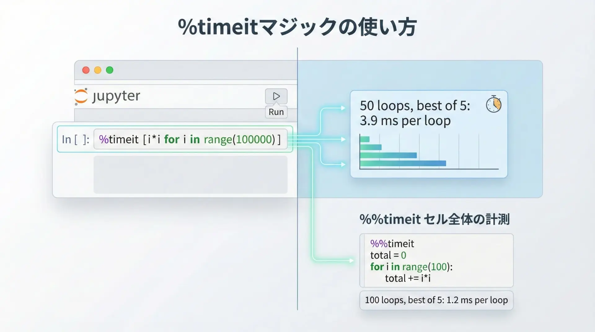 Jupyter Notebookでの%timeitマジックの活用