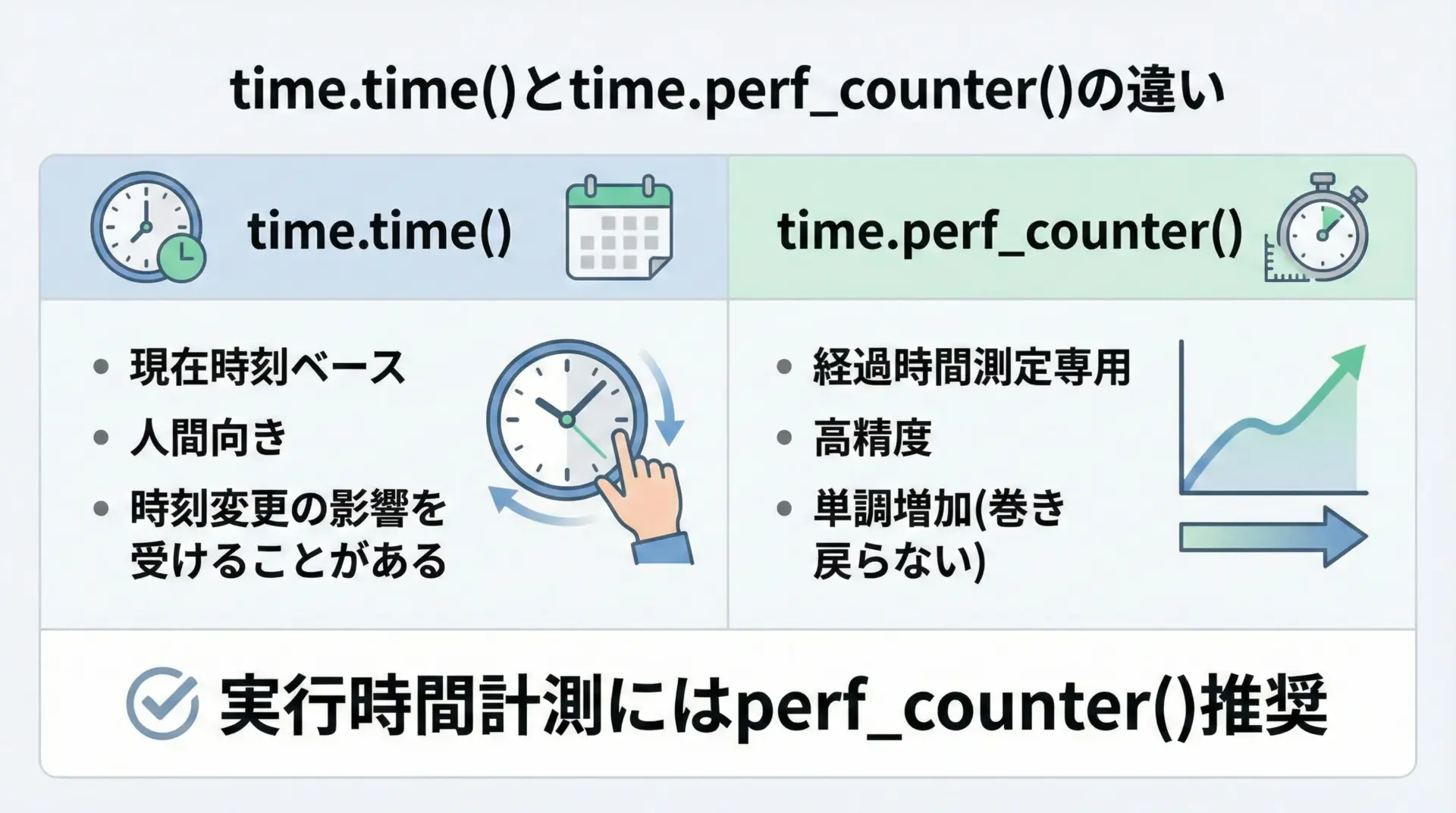 本記事では、Python標準ライブラリだけで実行時間を正しく計測する方法を丁寧に解説します。