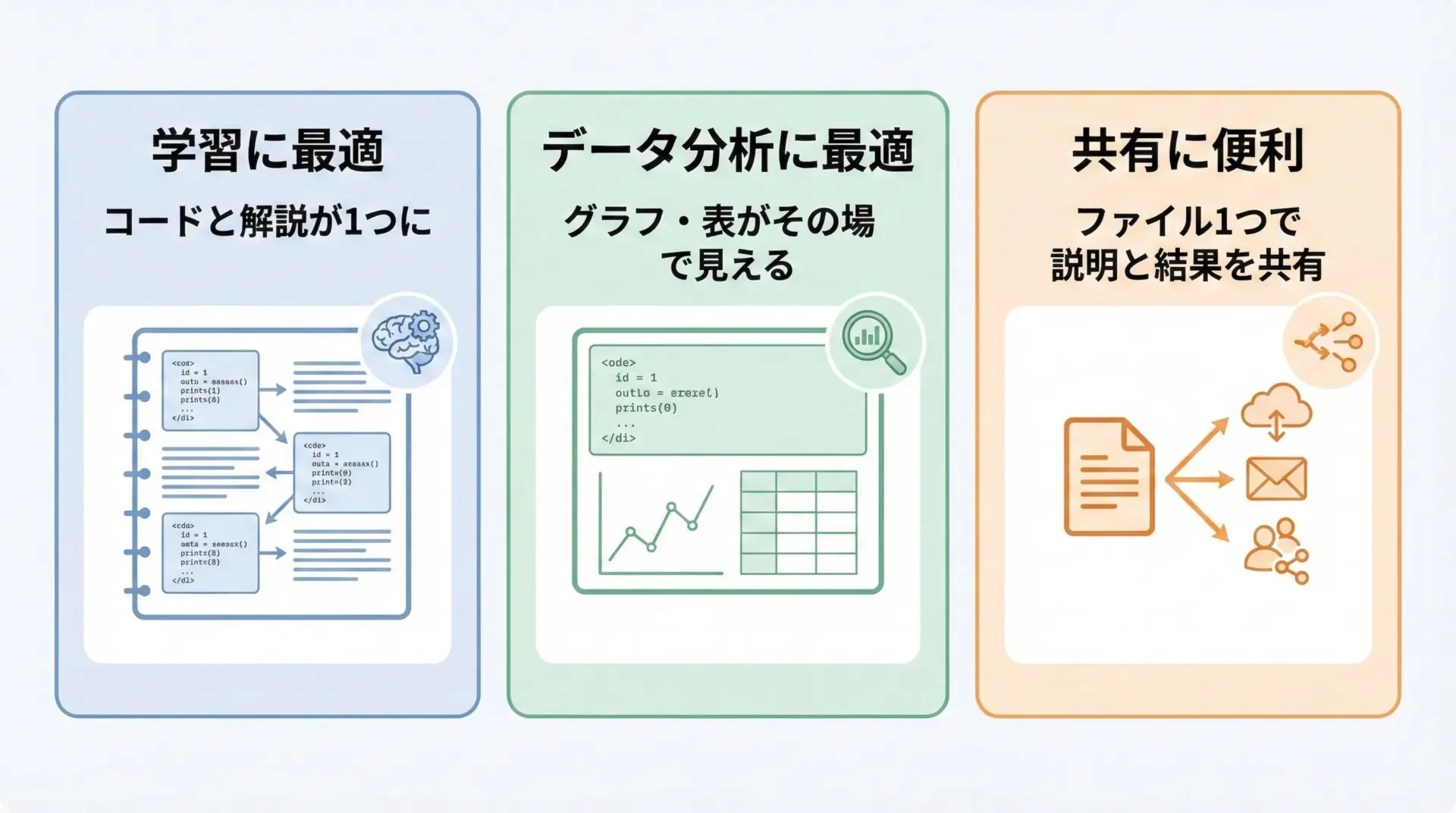 Jupyter Notebookは「自分用のメモ」としてだけでなく、「他人に伝えるドキュメント」としての側面も意識して設計することが重要です。