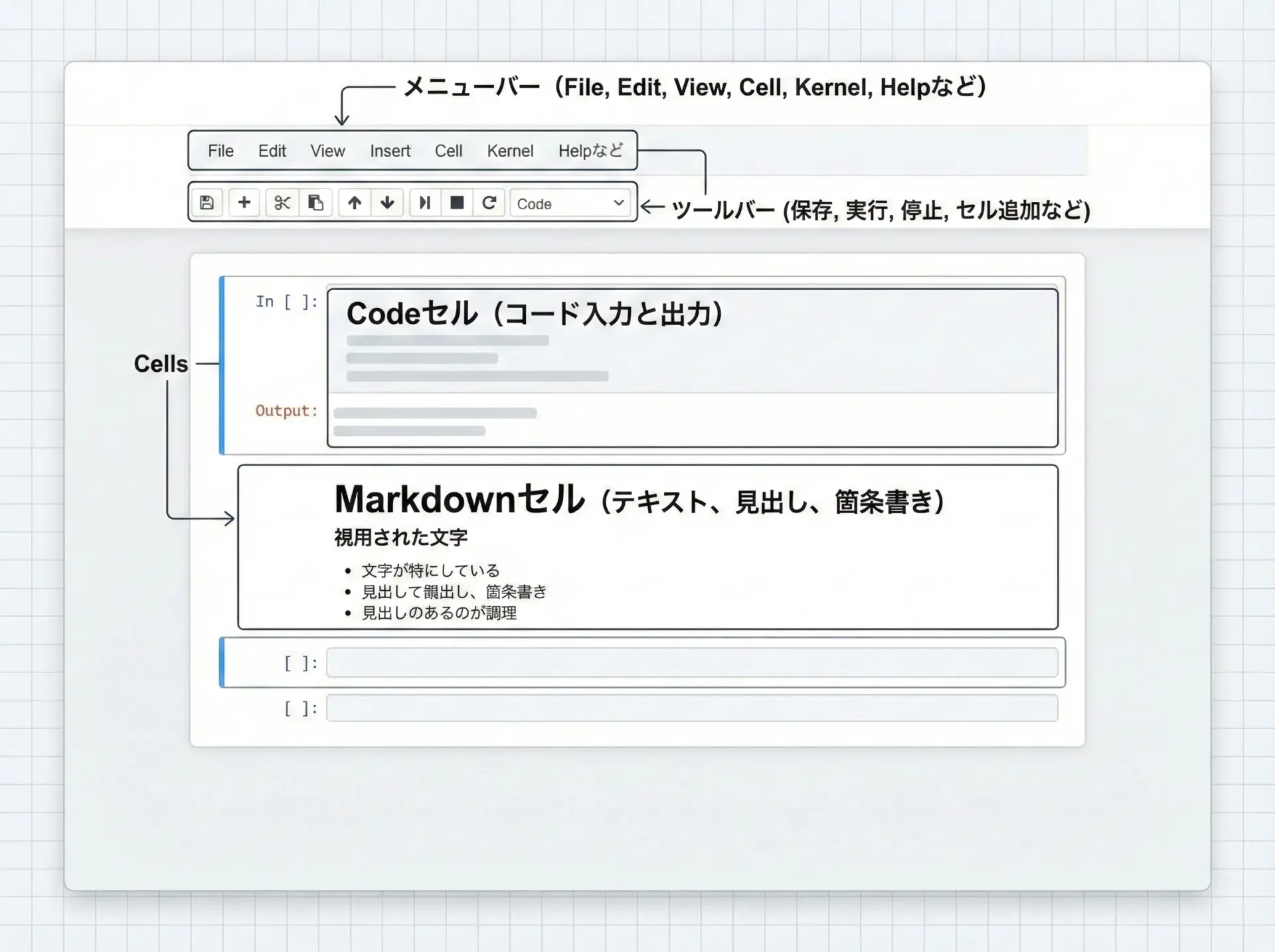Jupyter Notebookは、ブラウザ上でPythonコードを実行しながら、説明文やグラフ、画像などを1つの「ノートブック」にまとめられるツールです。