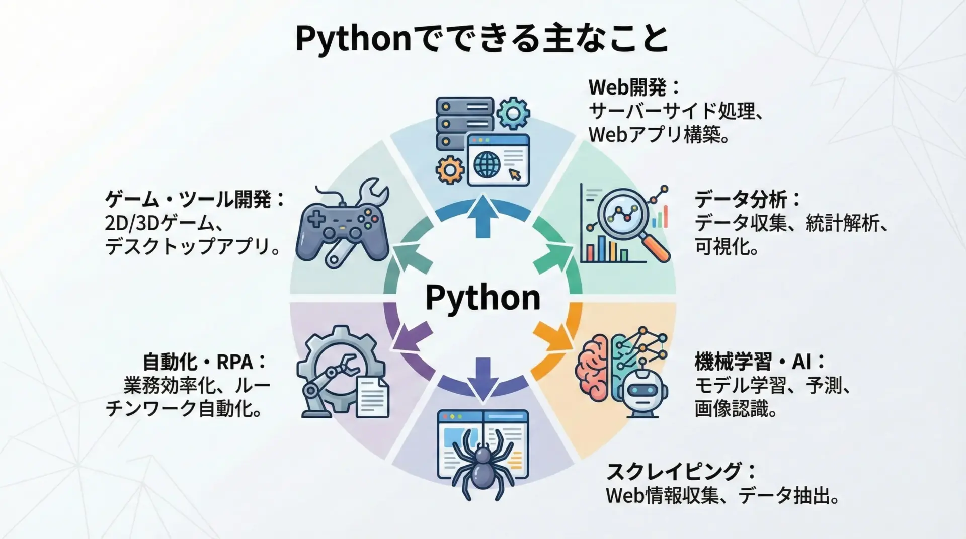 Pythonのメリットは次のように整理できます。