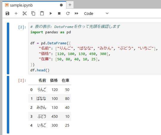 セルごとに実行結果が直下に表示されるため、試行錯誤がとてもやりやすいのが特長です。