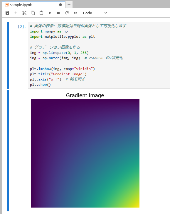 Jupyterではセルと呼ばれる小さなブロック単位でコードを実行します。
