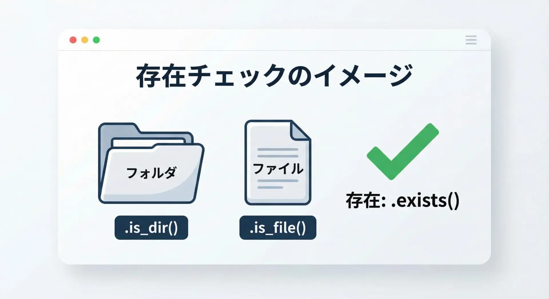 .name、.parent、.suffixなど)でパス情報を簡単に取り出せる .exists()や.is_file()などのメソッドで、ファイルシステムにアクセスできる
