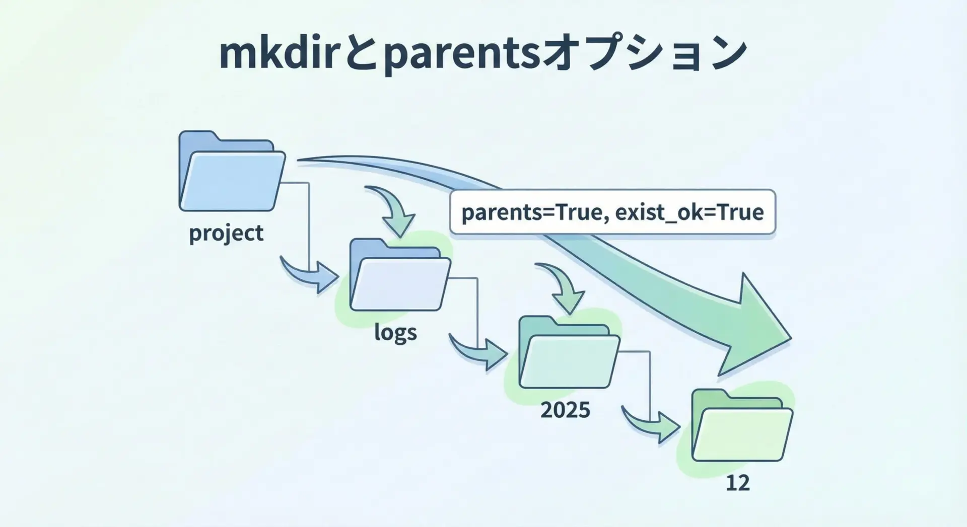 | 作成 | 親ディレクトリごと作成 | p.mkdir(parents=True) |