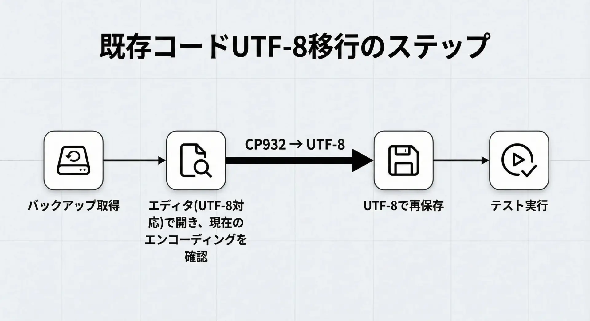 本記事の手順とサンプルコードを参考に、段階的に環境を整備し、CP932由来のトラブルから解放される運用を目指してください。