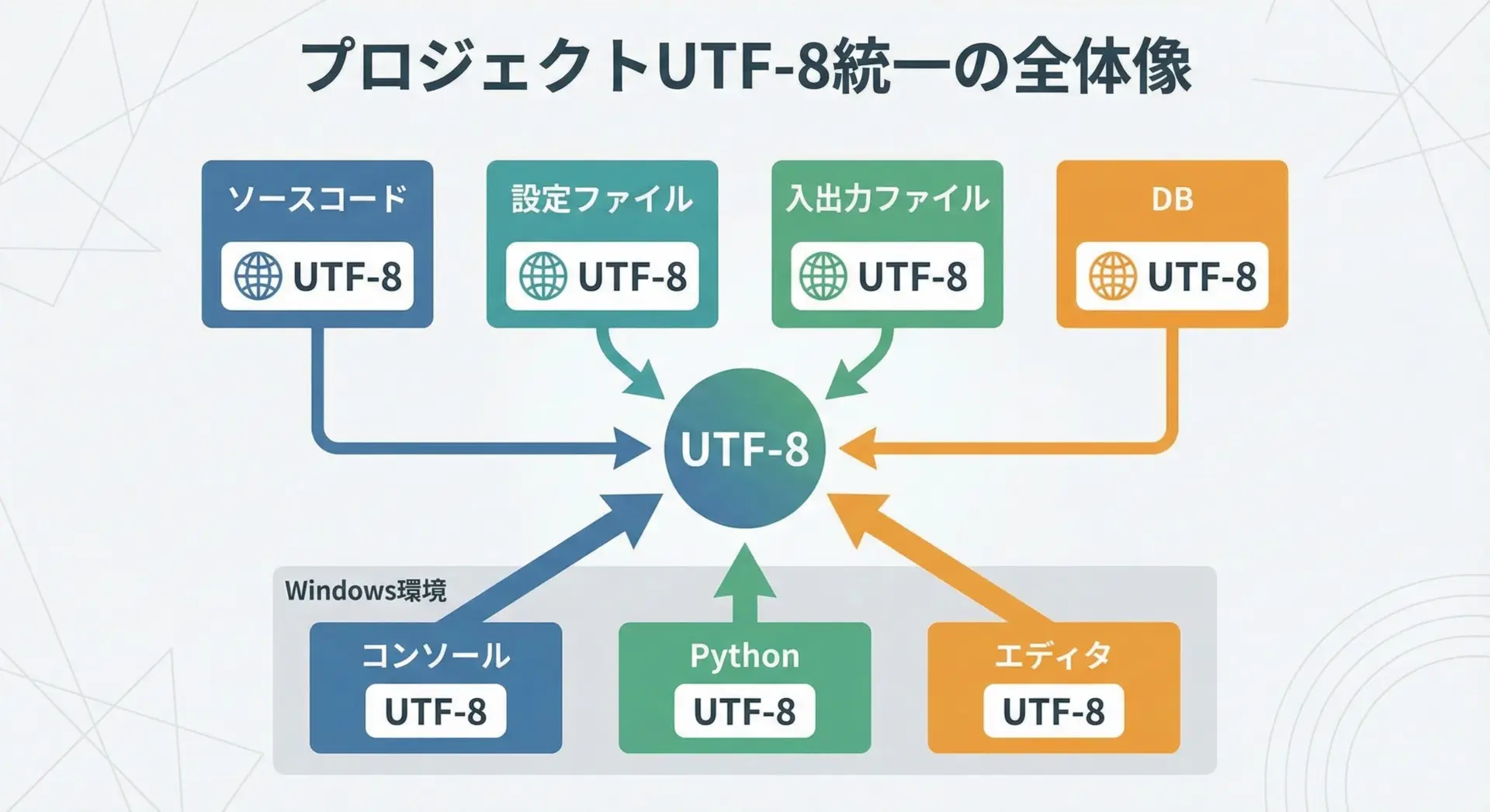 ただし、Python内部はUnicodeであり、UTF-8を標準とする設計にしておくことで、文字化けやcp932 codecエラーの大半は防げます。