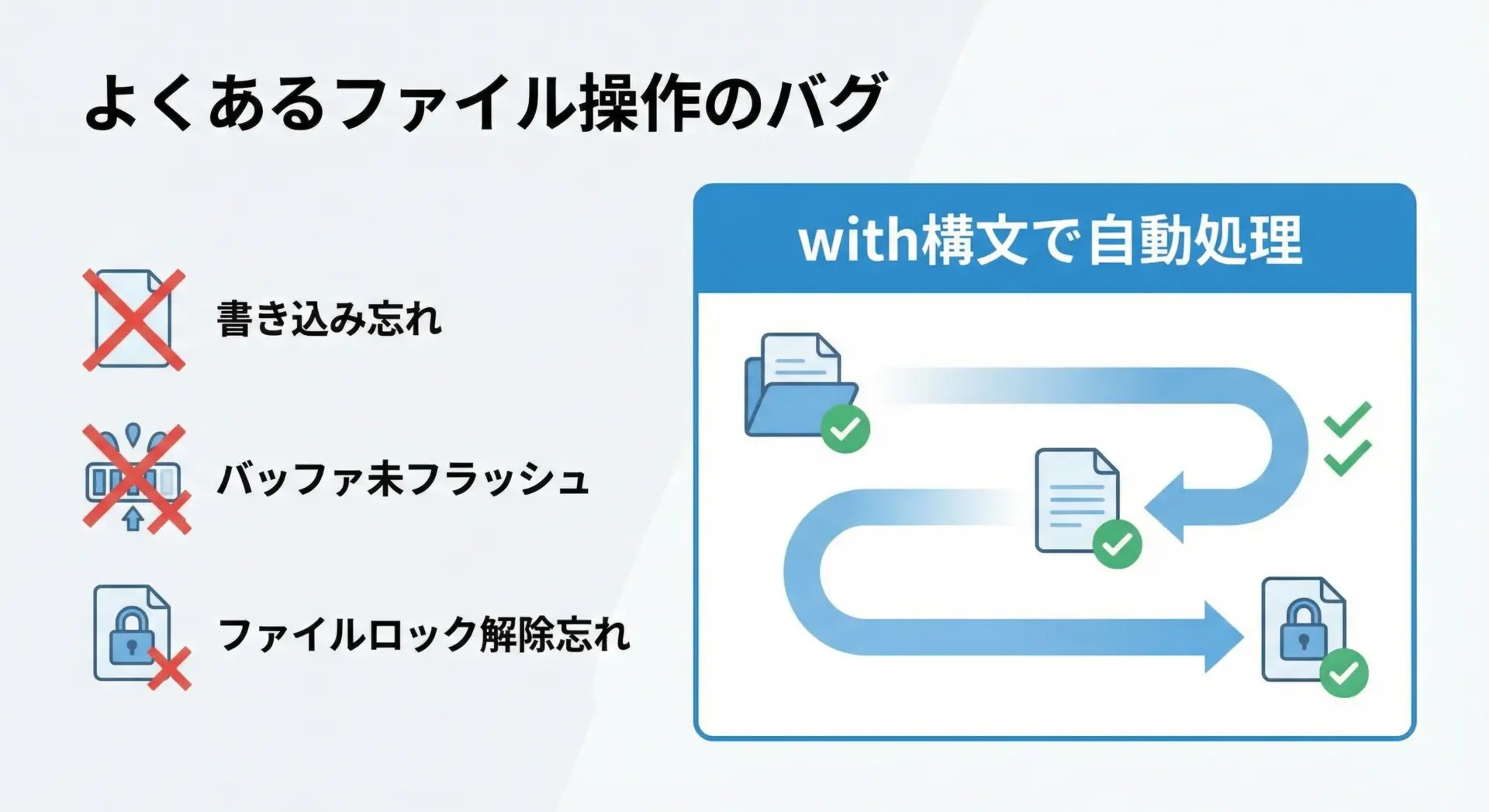 ファイル操作は、シンプルに見えて意外とバグの温床です。