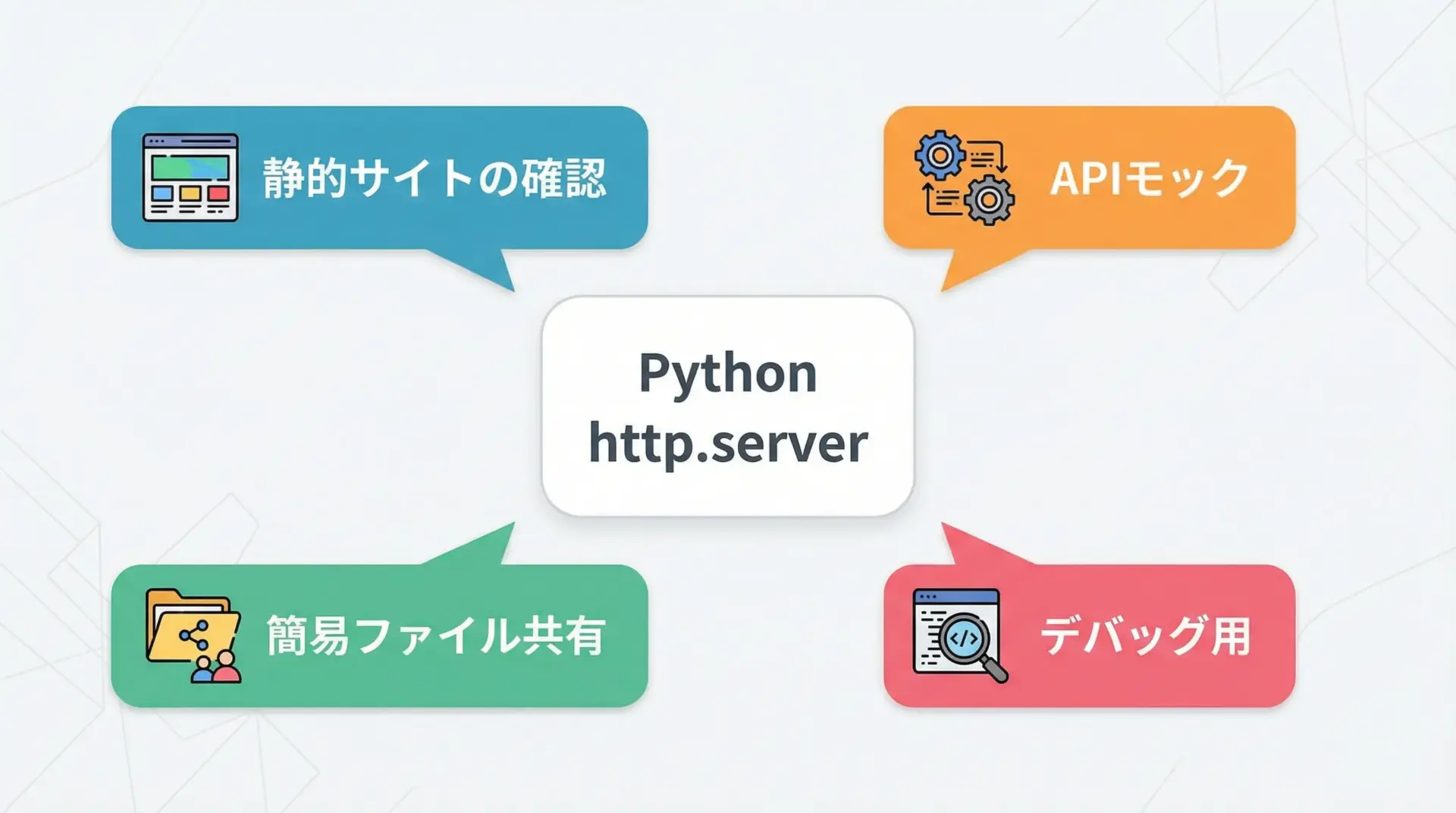 Pythonのhttp.serverを使えば、インストール不要・1行コマンドでローカルサーバーを起動でき、静的サイトの確認やAPIモック、簡易ファイル共有まで幅広く活用できます。