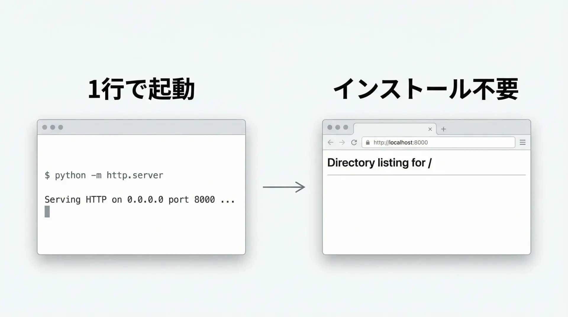 python -mでモジュールhttp.serverを「スクリプトとして」実行- デフォルト設定(ポート8000、現在のディレクトリ)でHTTPサーバーを起動