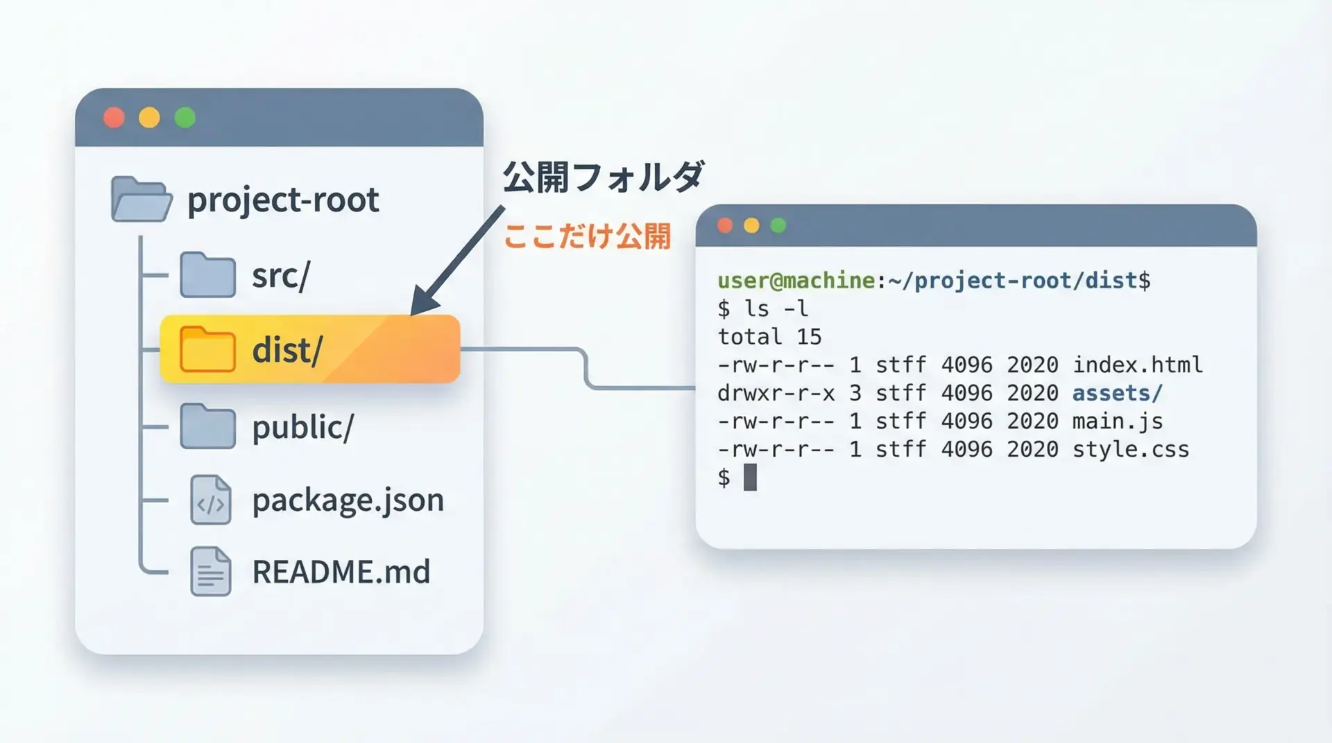 この例では、distディレクトリ配下のファイルだけが公開されます。