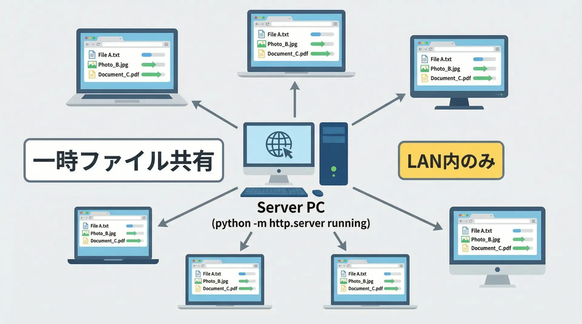 同じネットワーク内にいるメンバーに一時的にファイルを配るだけなら、専用のファイルサーバーを構築しなくても、Pythonのローカルサーバーで十分な場合があります。
