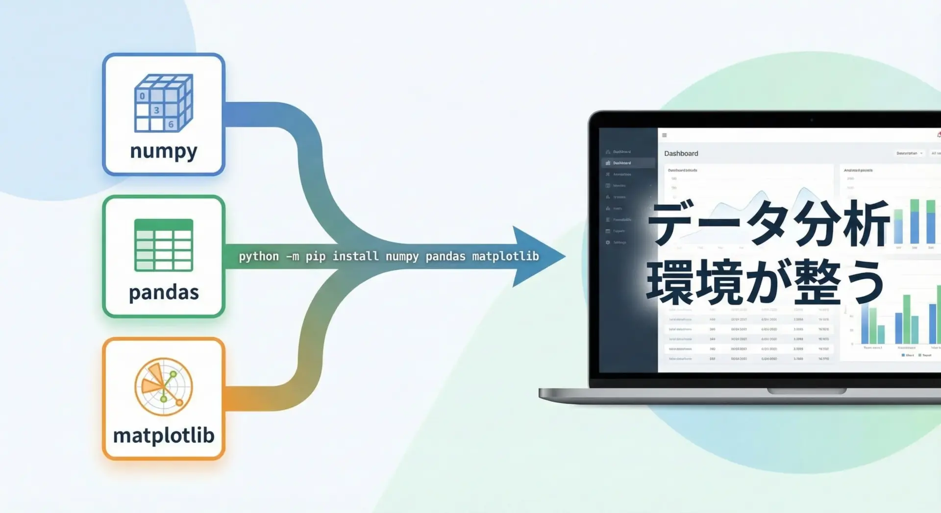 | データ分析向けの一括環境 | 自分でpip install | Anacondaが多数のライブラリを同梱 |