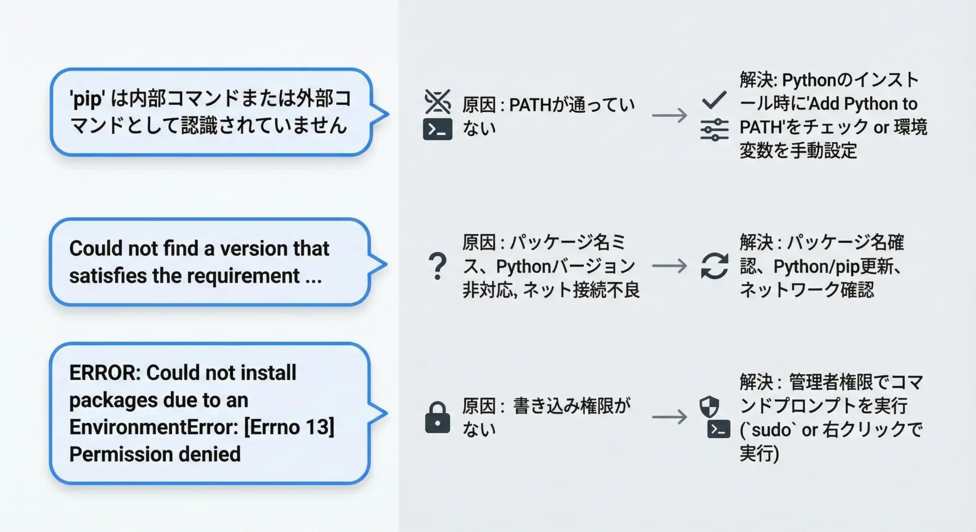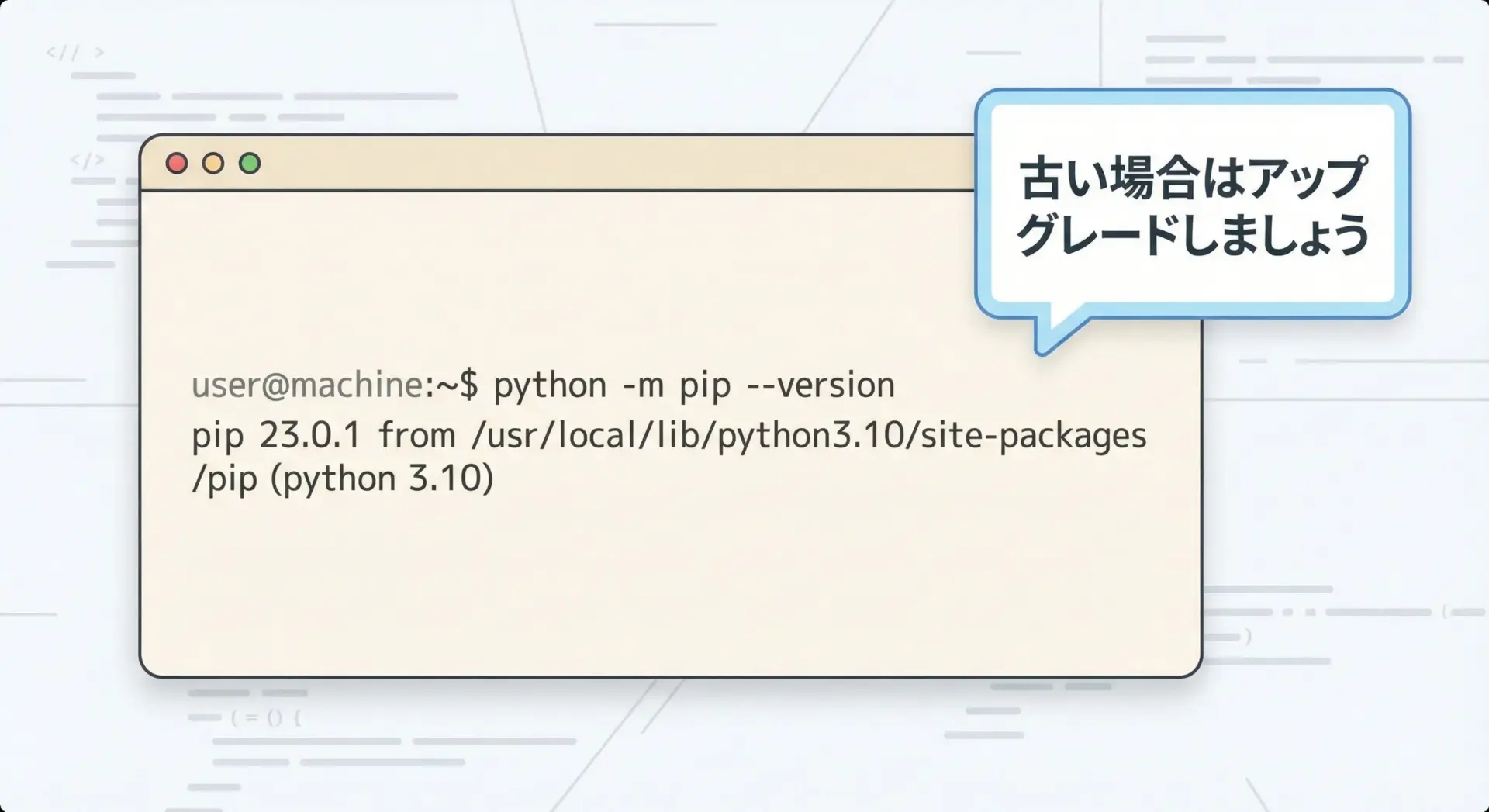重要なポイントは、Pythonのバージョンごとに対応するpipが存在するという点です。