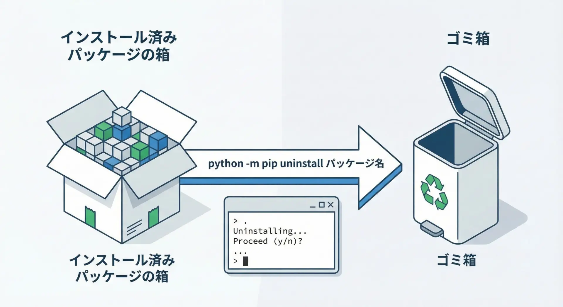 python -m pip uninstall パッケージ名