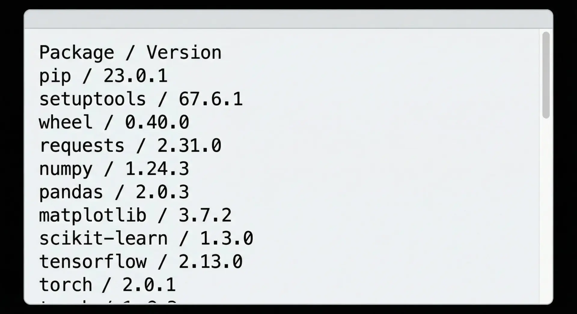 プロジェクトで使っているパッケージを一覧としてファイルにまとめておくと、別のPCやチームメンバーの環境に同じセットを簡単に再現できます。