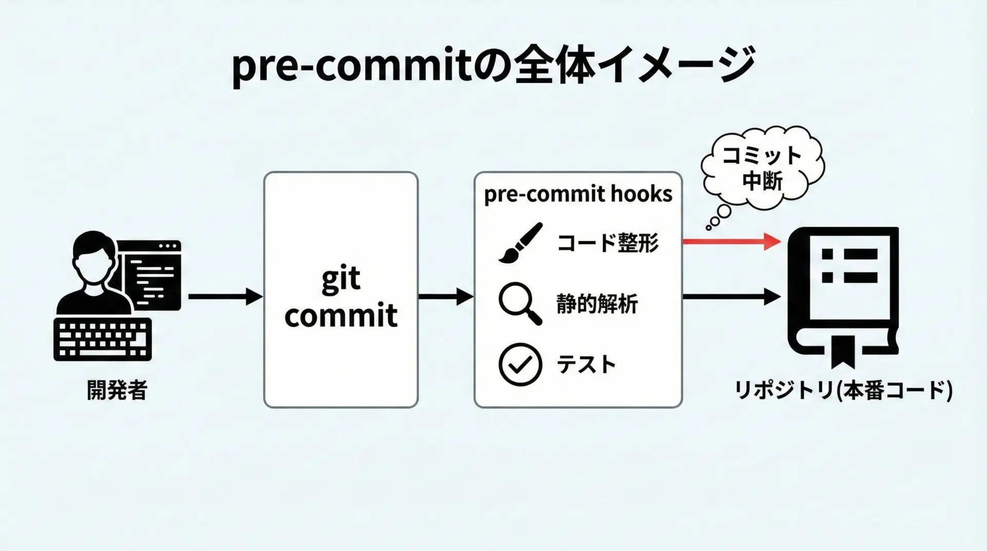 つまり「コミット前にうっかりミスを自動で防いでくれる守護神」のような存在だと考えてください。