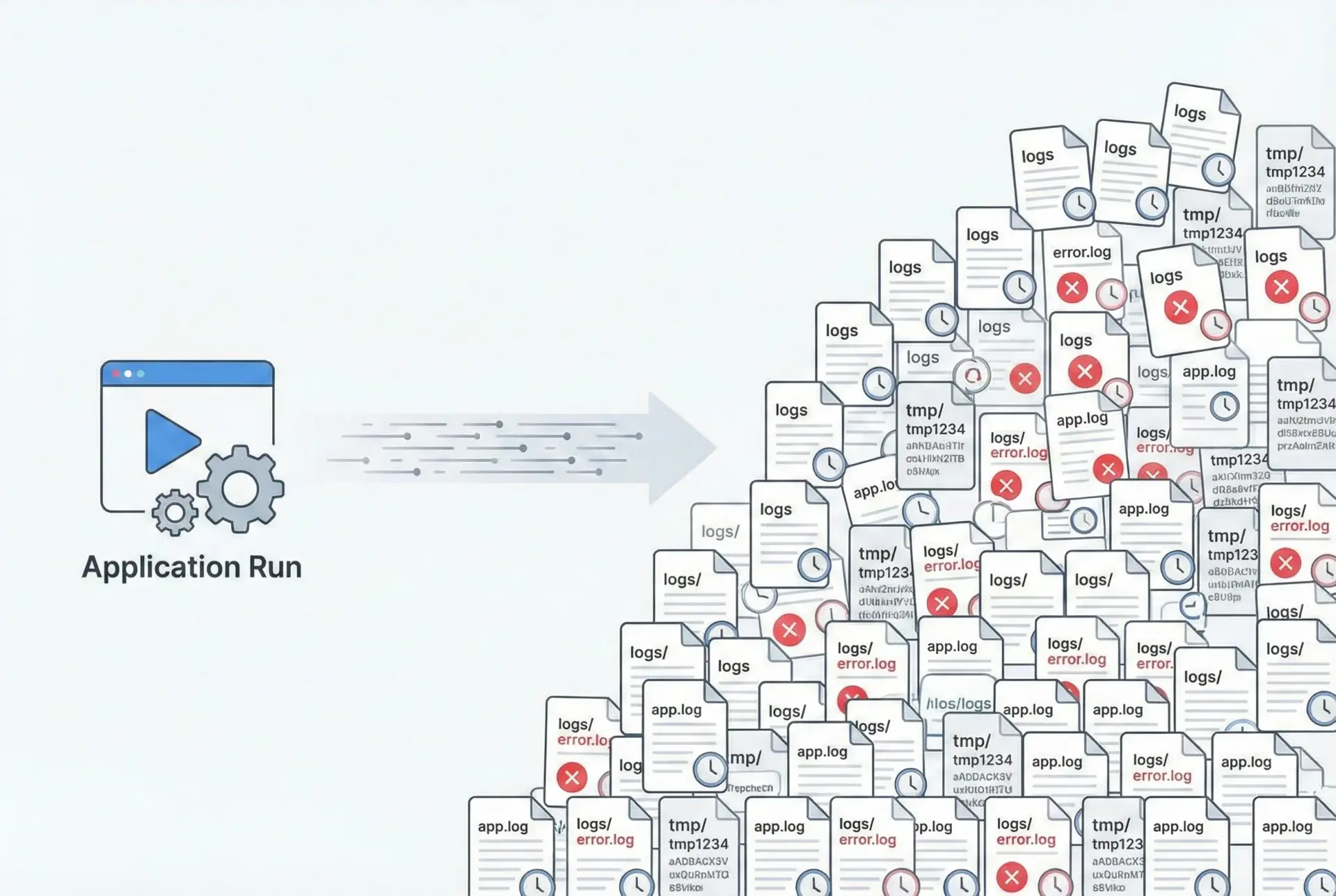 アプリケーションを動かしていると、動作記録として.logファイルが生成されたり、一時的な作業ファイルがtmp/やtemp/ディレクトリに作られたりします。