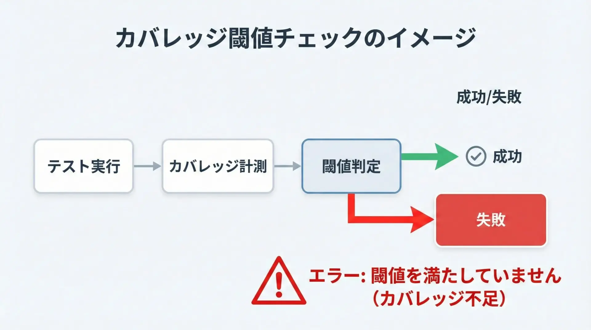 チーム運用では、いきなり高い値を設定するのではなく、現在のカバレッジより少し低めの値から始めて、徐々に引き上げていくのがおすすめです。