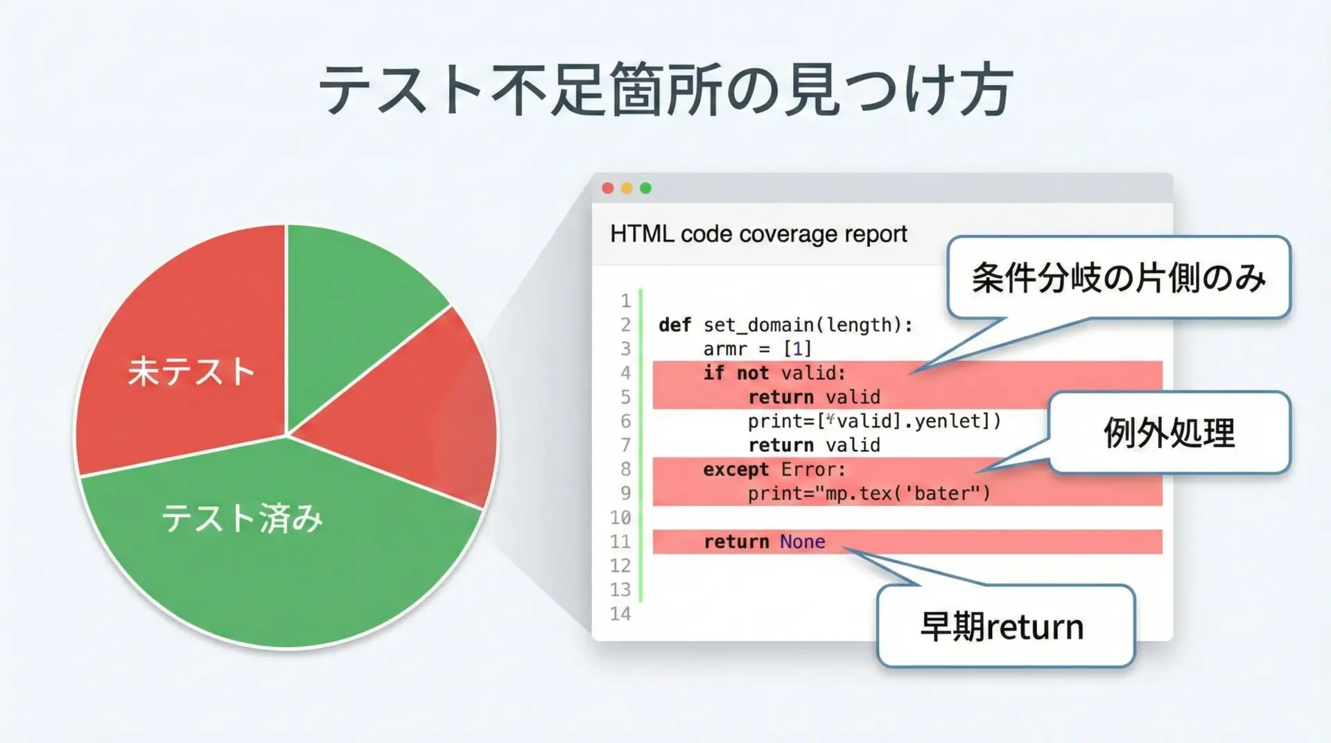 Pythonでのテストは動かして終わりではなく、「どこまでテストできているか」を把握することが重要です。
