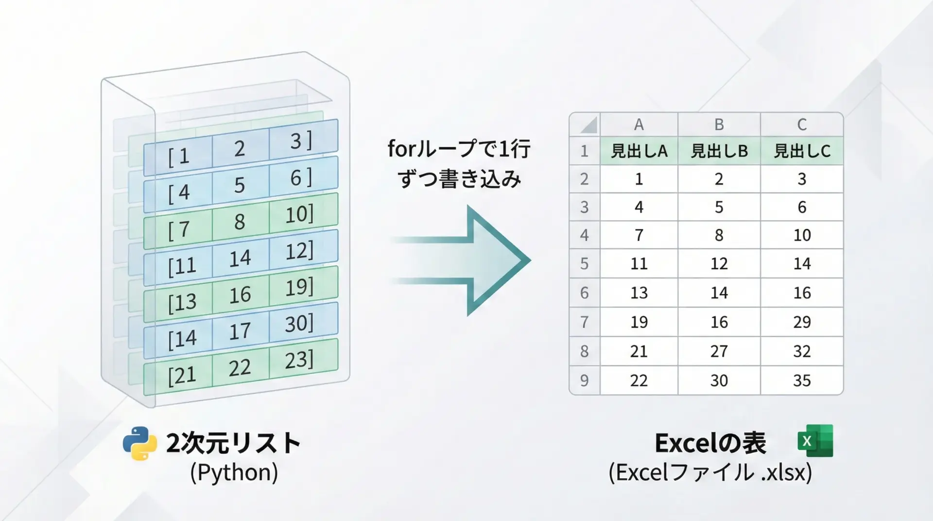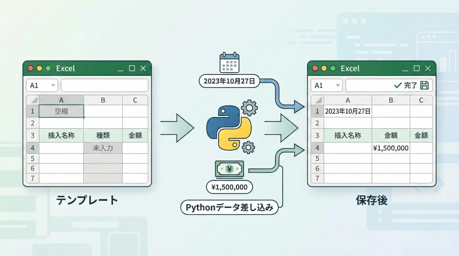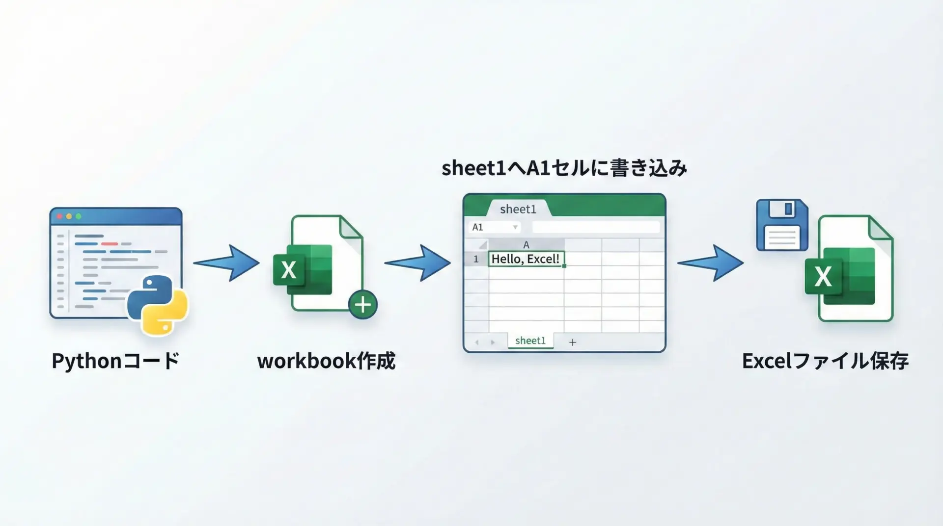 GUIを開かずにPythonコードだけでブックの作成・読み込み・編集・保存まで行えるため、定型業務の自動化やデータ処理にとても役立ちます。