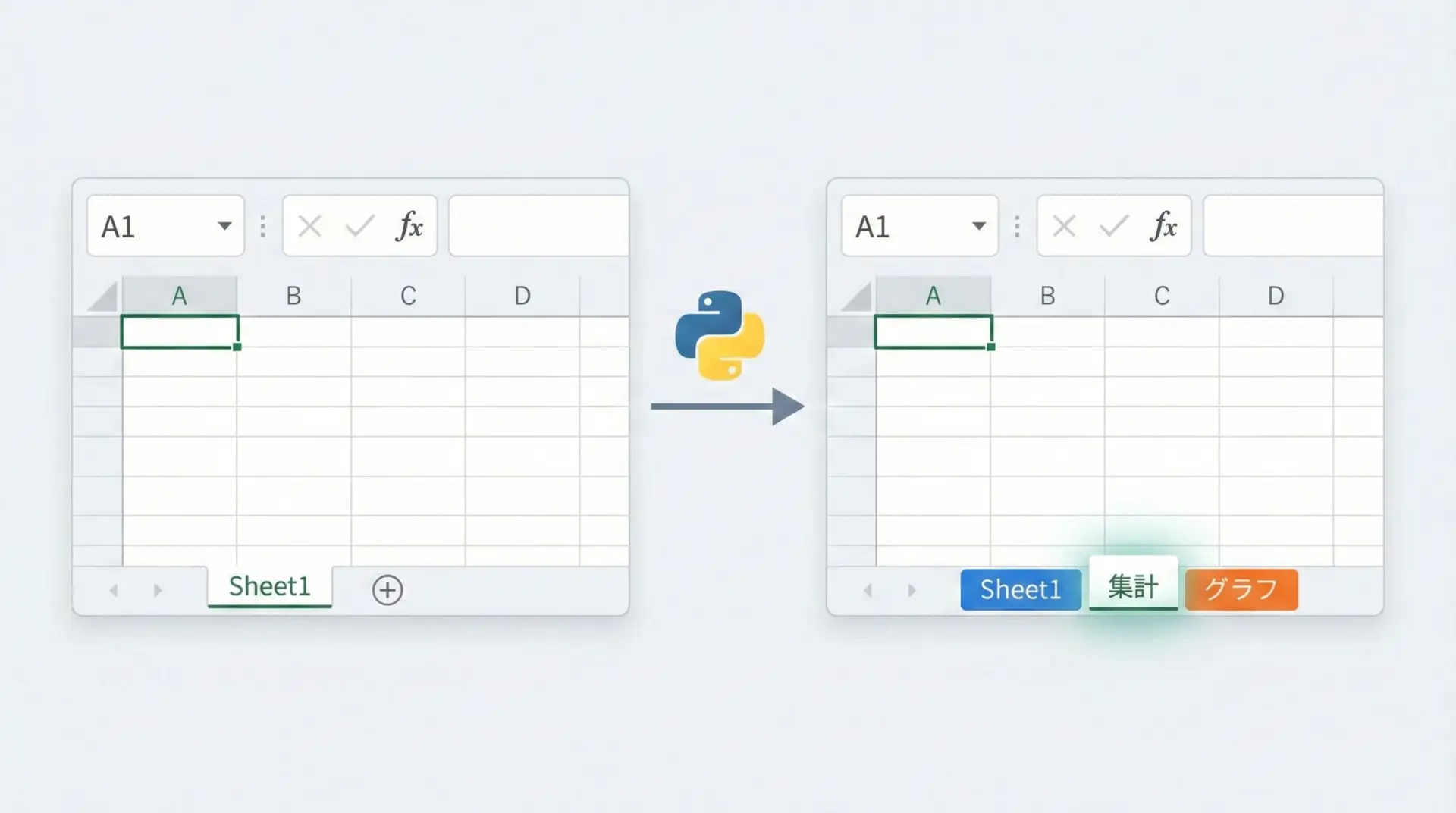 複数シートを持つブックを扱いたい場合も、openpyxlで簡単に操作できます。