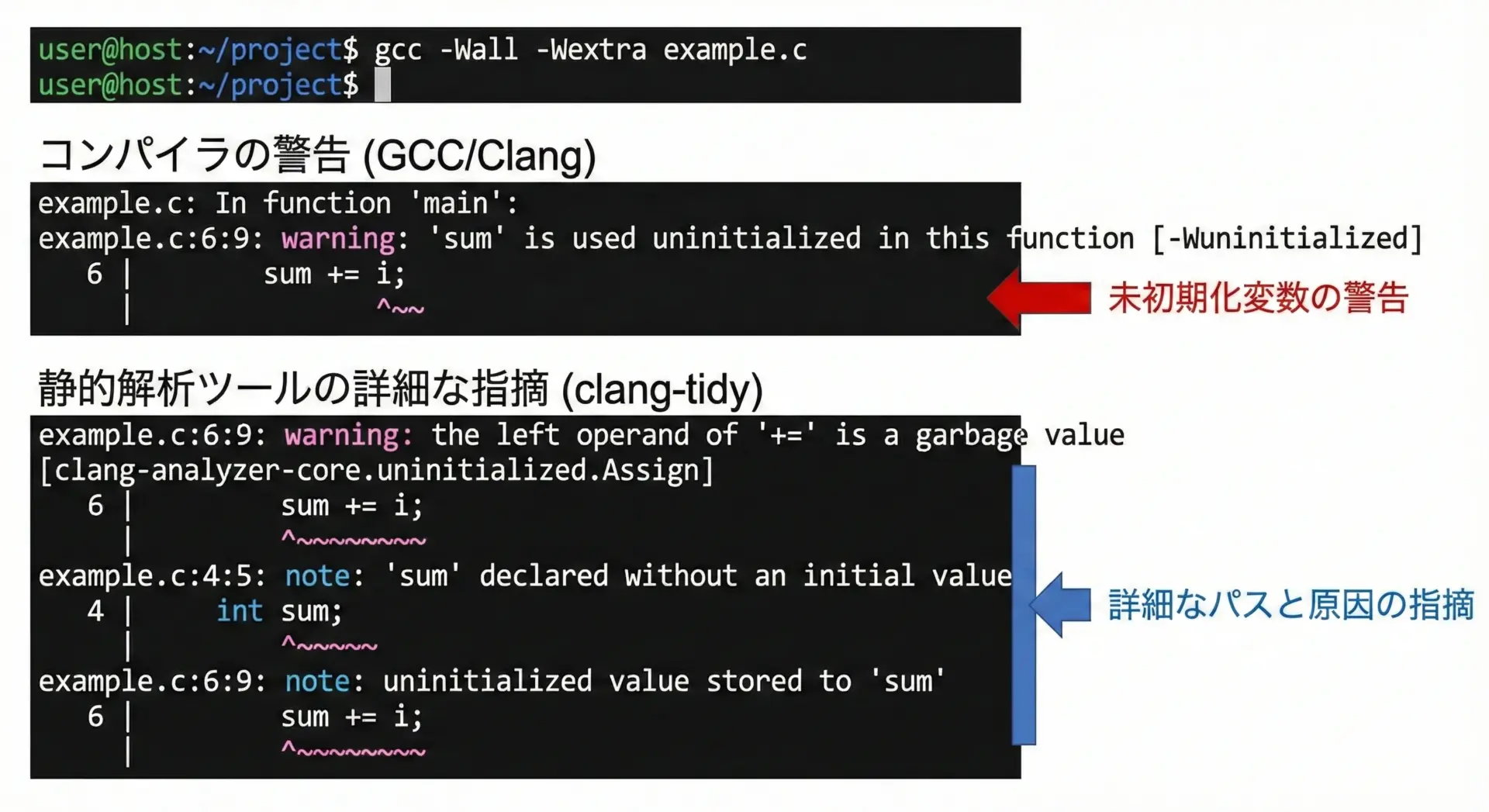 コンパイラ警告と静的解析ツールで未初期化変数を検出