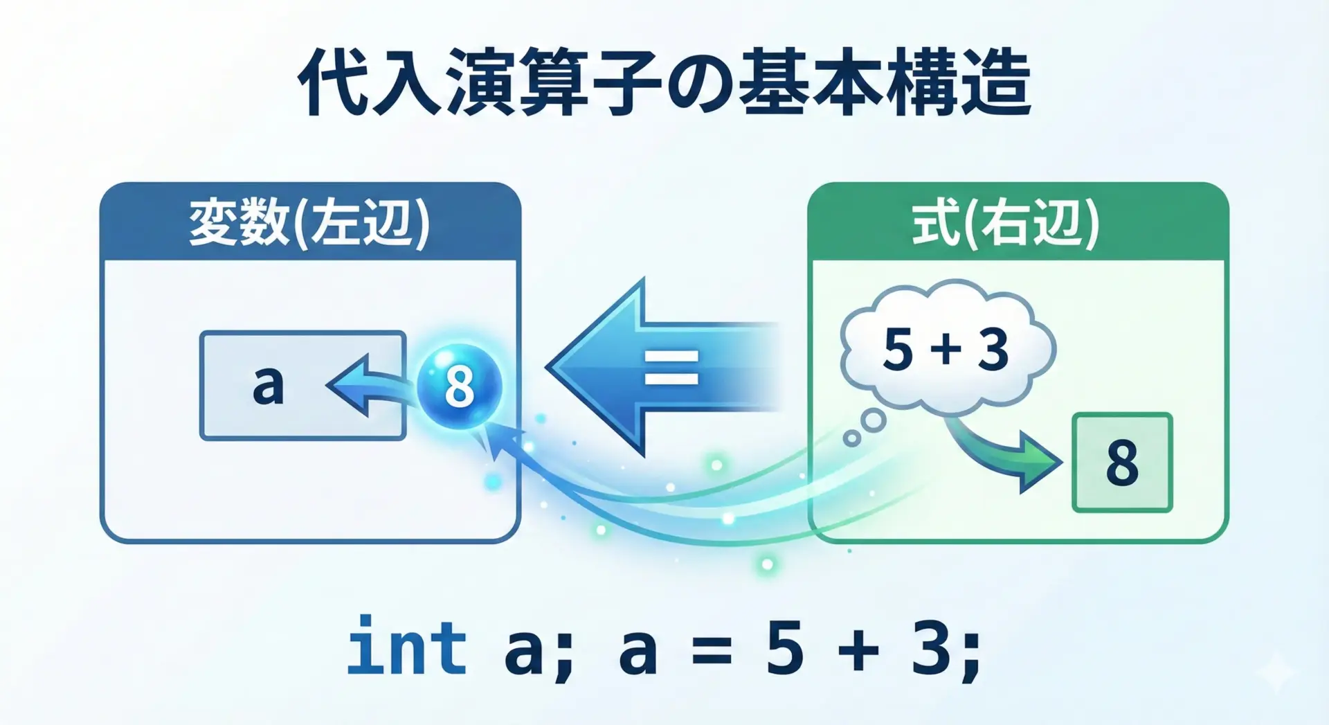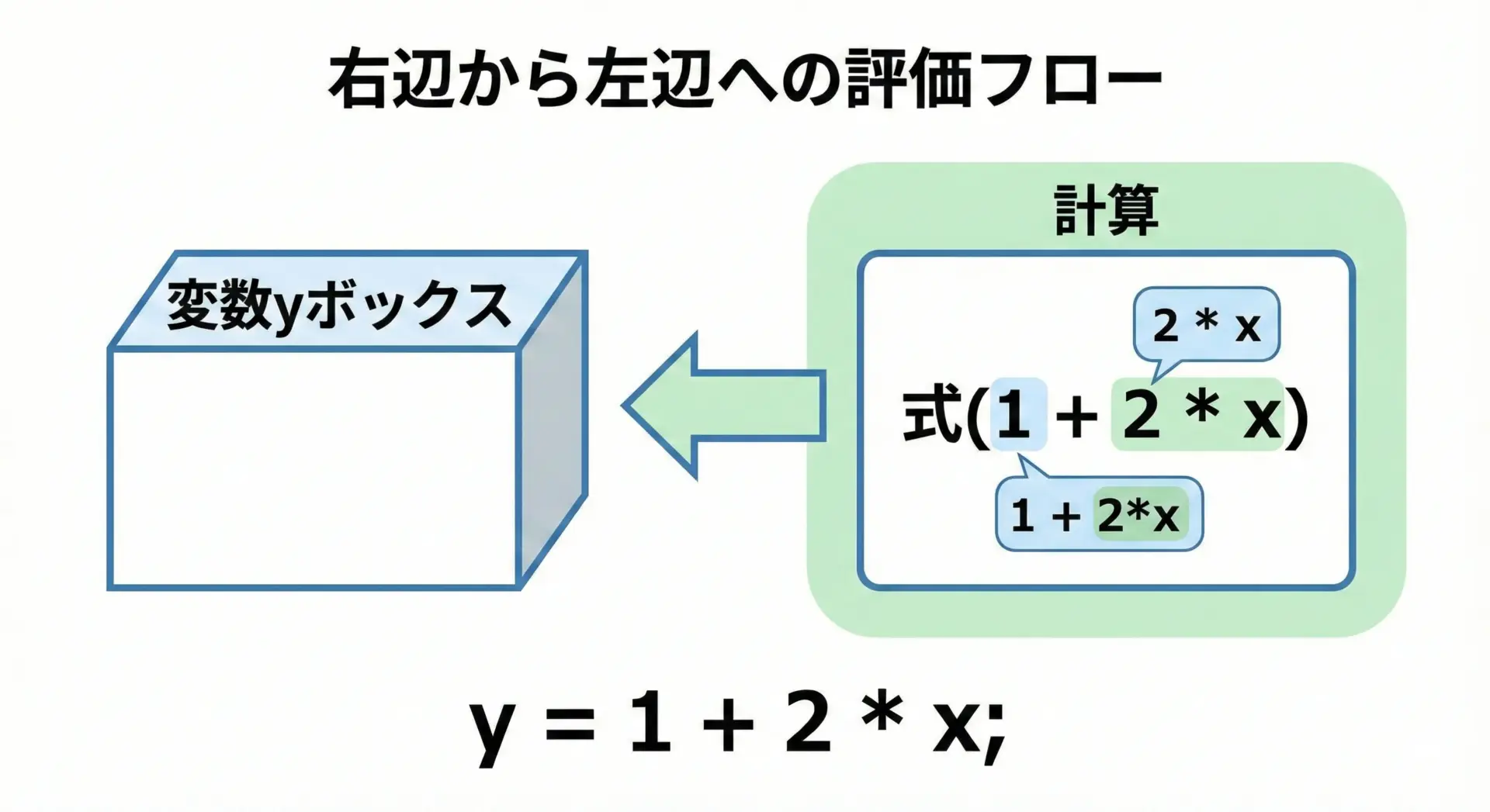 代入は「右辺→左辺」の順に評価されます