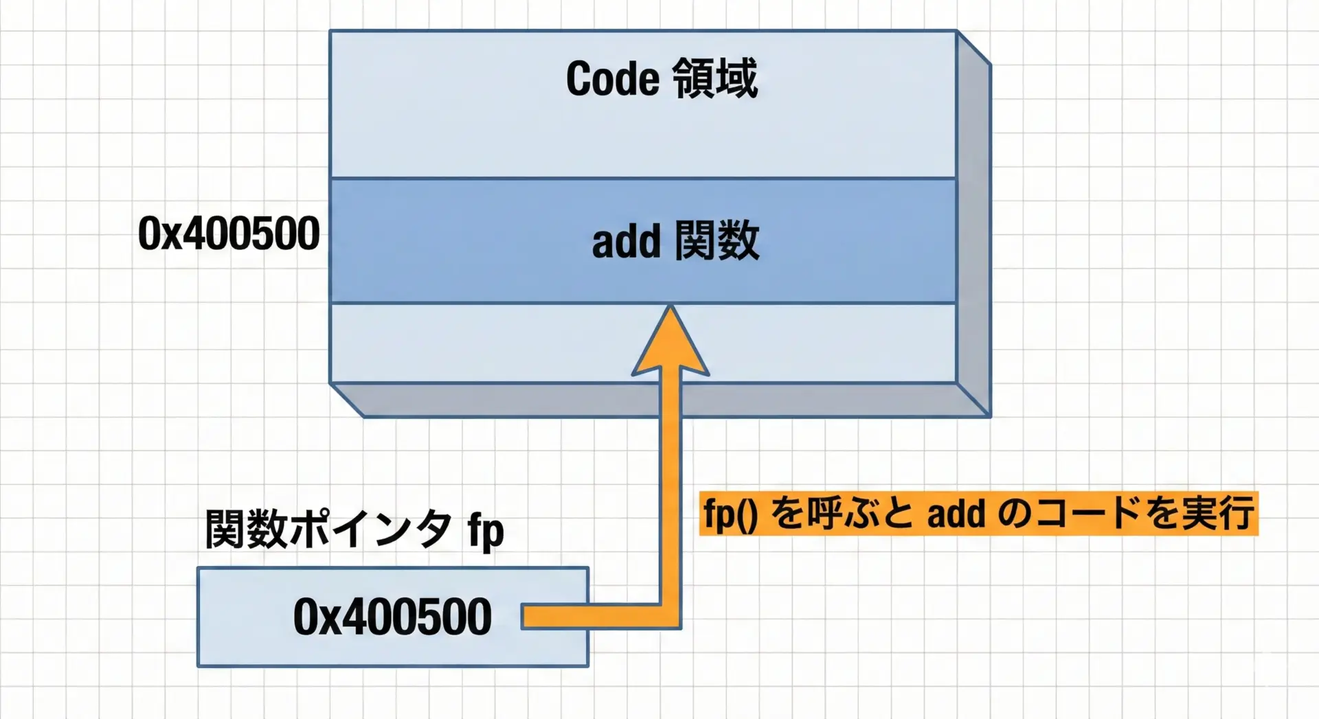 int result2 = fp(3, 4); // 関数ポインタを使った呼び出し