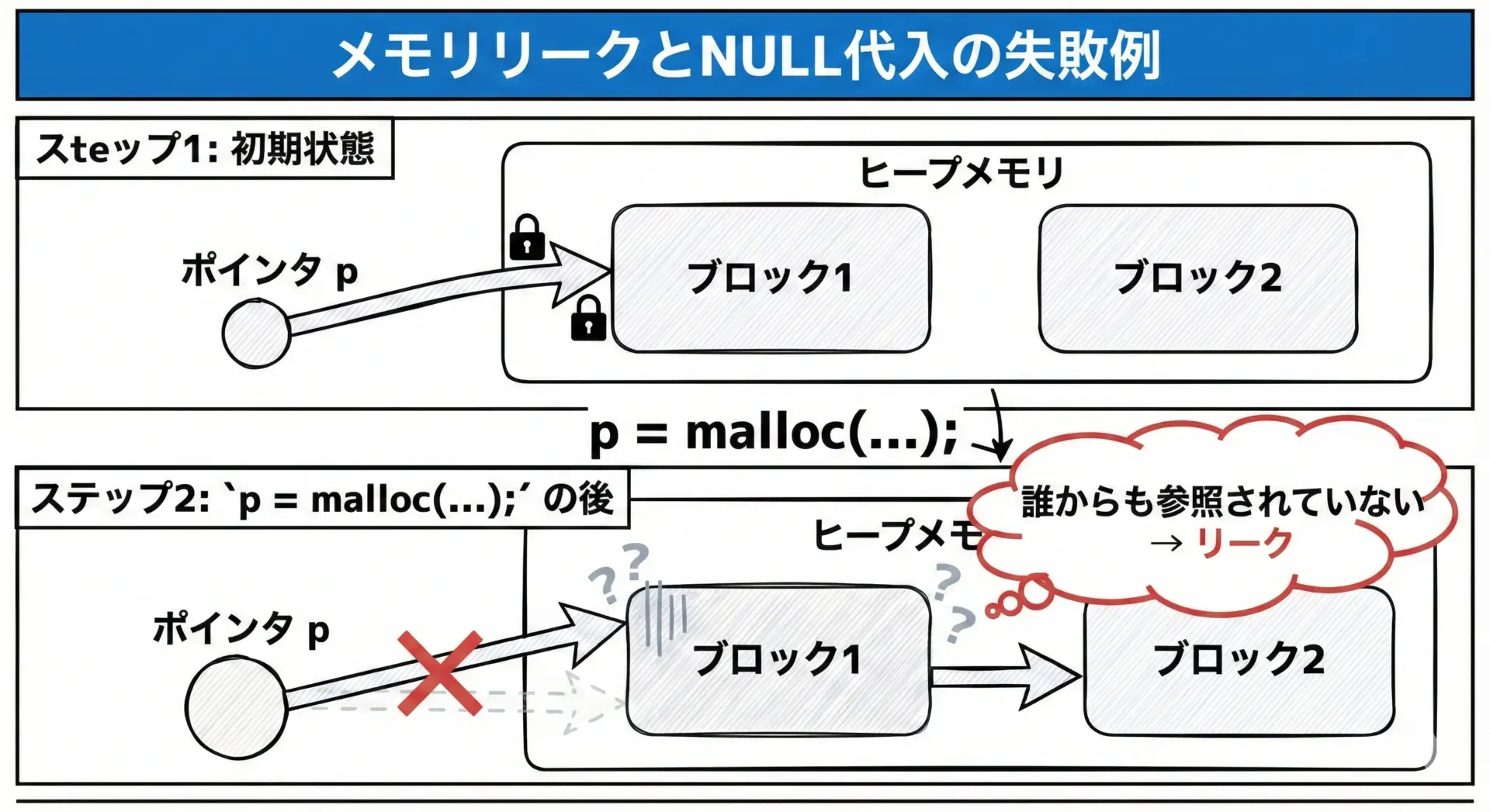 本記事では、NULLと0・ヌル文字の違い、初期化されていないポインタやダングリングポインタとの関係、メモリリークとの絡みなど、典型的な落とし穴を整理しました。