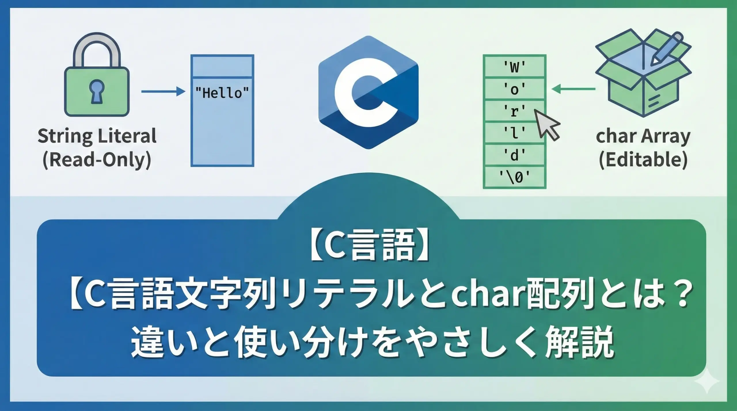 C言語では、文字列リテラルとchar配列がどちらも文字列として使われますが、メモリ上の配置や書き換え可否など、本質的な違いがあります。