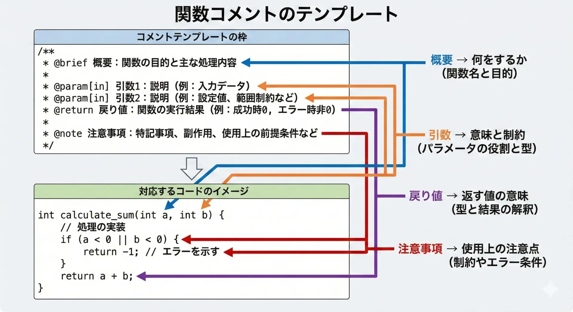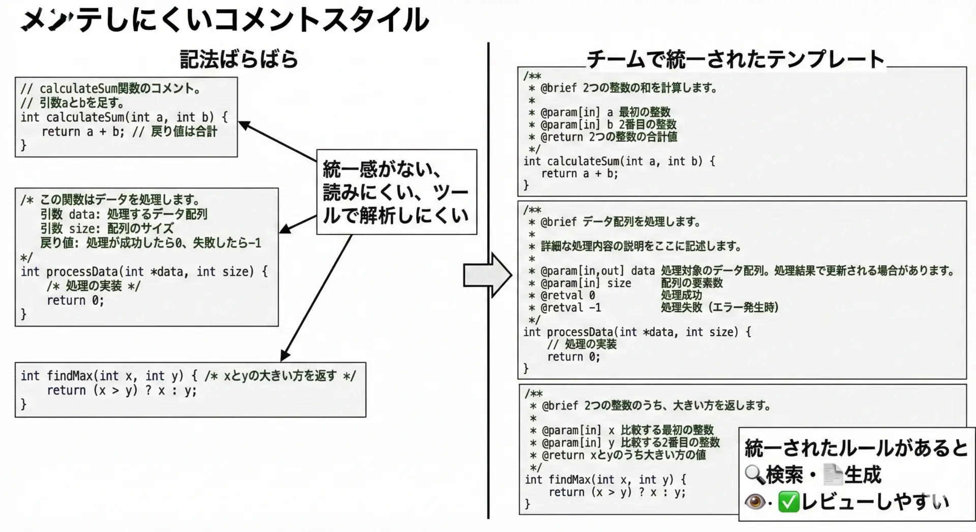 本文とサンプルコードを参考に、日々のC言語開発に適切なコメントスタイルを取り入れてみてください。