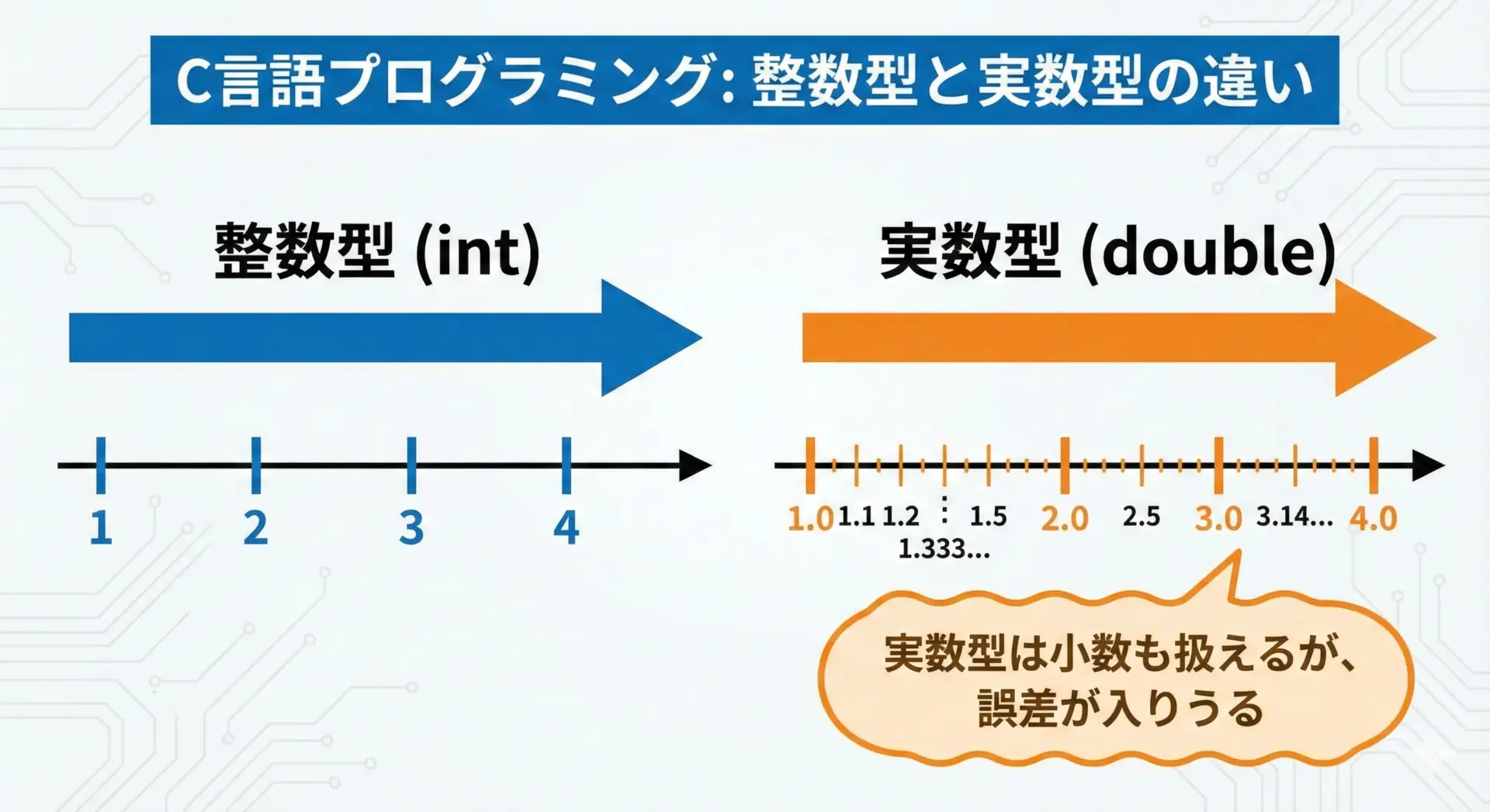 このように、どのタイミングでどの型に変換されるかを意識することが、C言語の数値計算では非常に重要です。