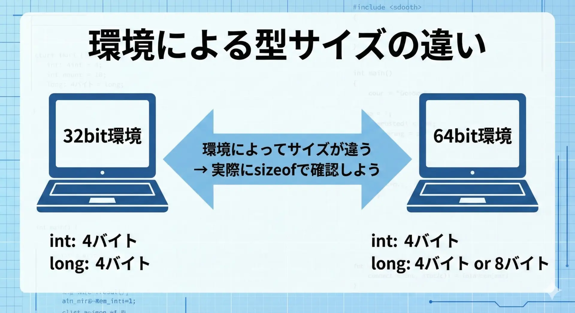 整数型・実数型・文字型といった基本的なデータ型の特徴を把握し、自分の環境でsizeoflimits.hを使ってサイズや範囲を確認しておくことも大切です。