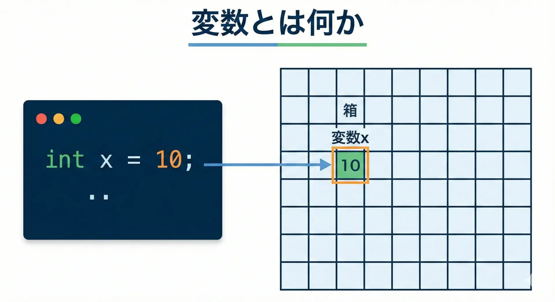 値を一時的に保存したり、計算の結果を扱ったりするために欠かせない存在であり、変数を正しく使えるかどうかでプログラムの質が大きく変わります。