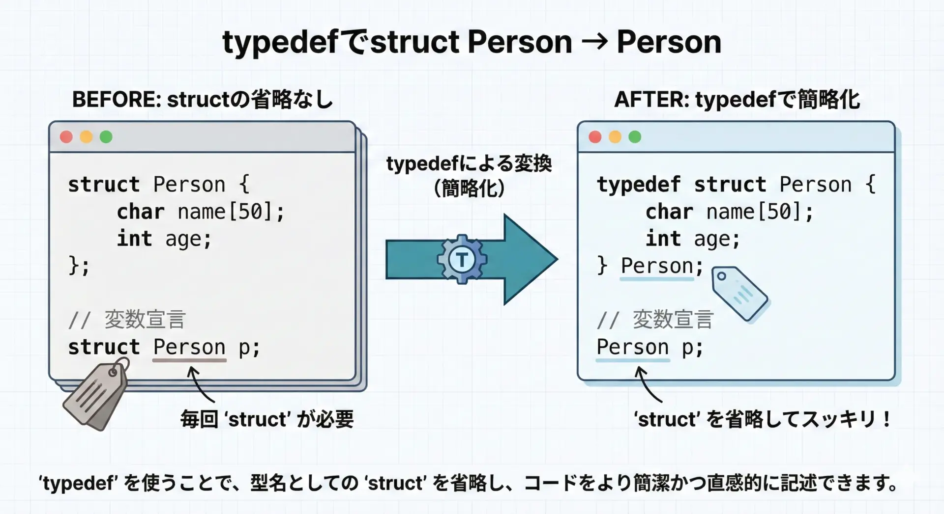 構造体名、メンバー名、変数名は役割が伝わる名前にすると、アクセスするコードも自然に理解できます。