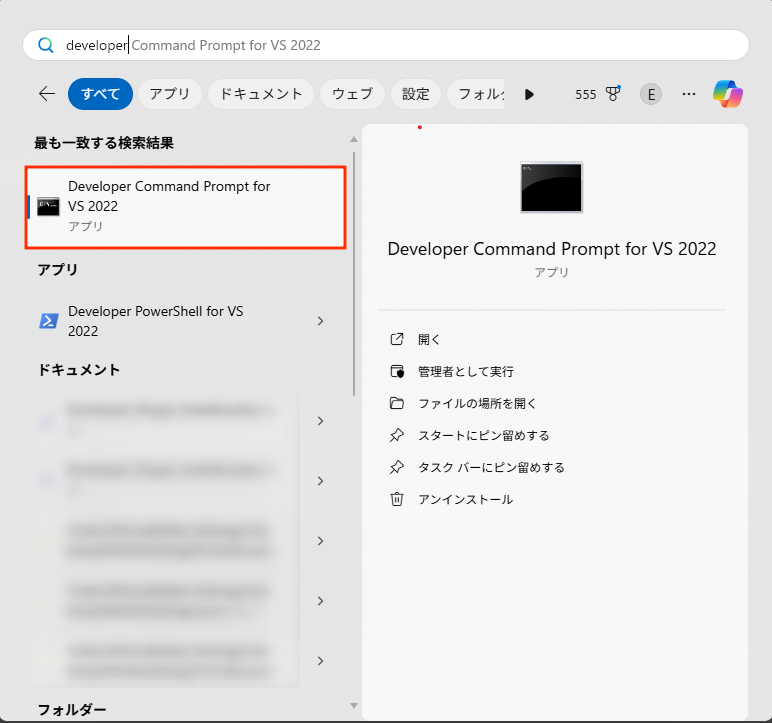 必ず「開発者用コマンドプロンプト」から実行してください。
