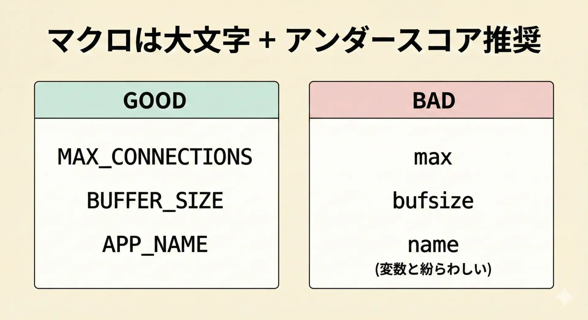 多くのプロジェクトでは、マクロ名の命名規則を明確に定めています。
