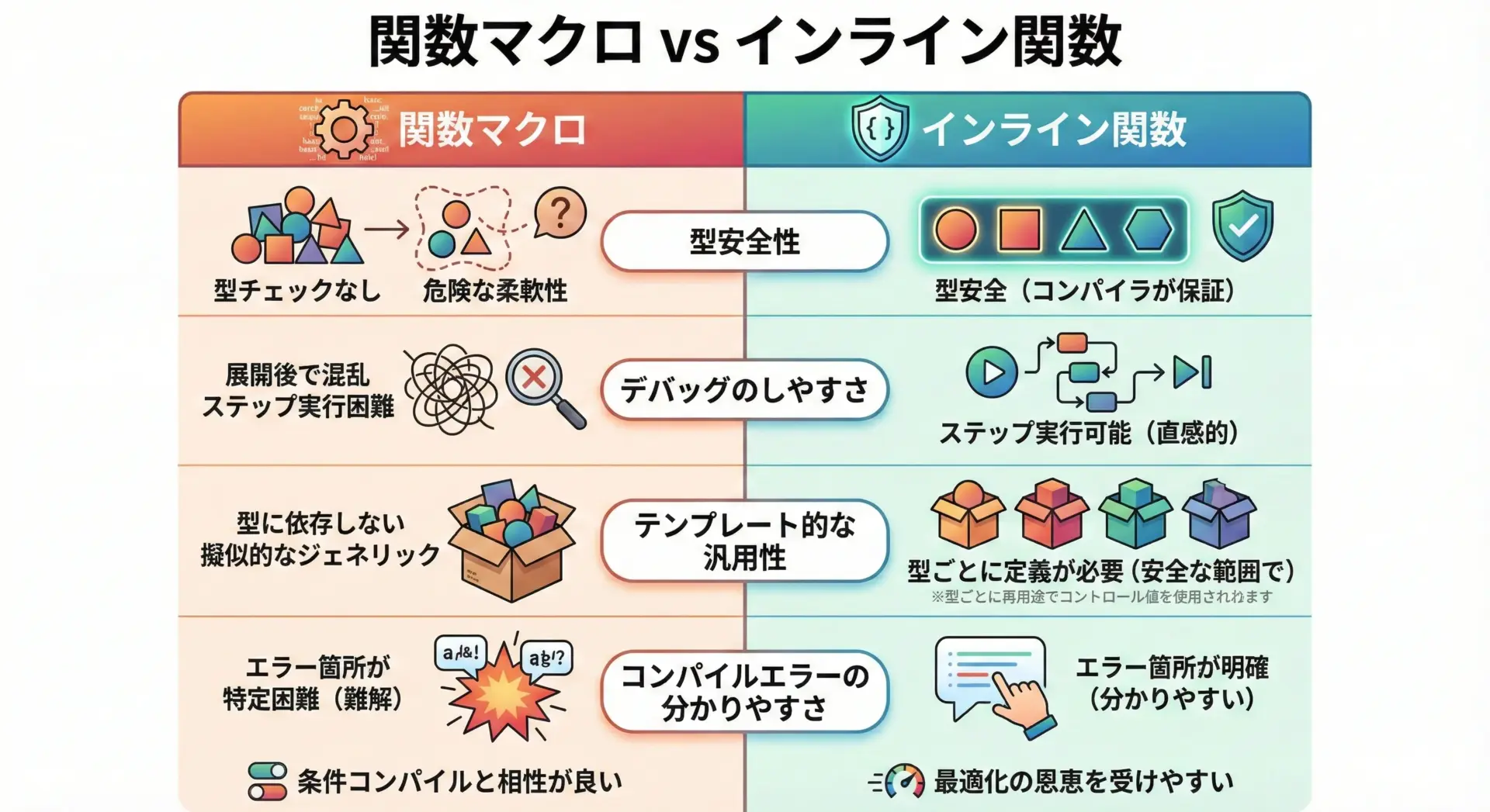 本記事では、関数マクロの基本から、多文マクロの安全な書き方、インライン関数との使い分けまで、実践で役立つ観点から詳しく解説します。