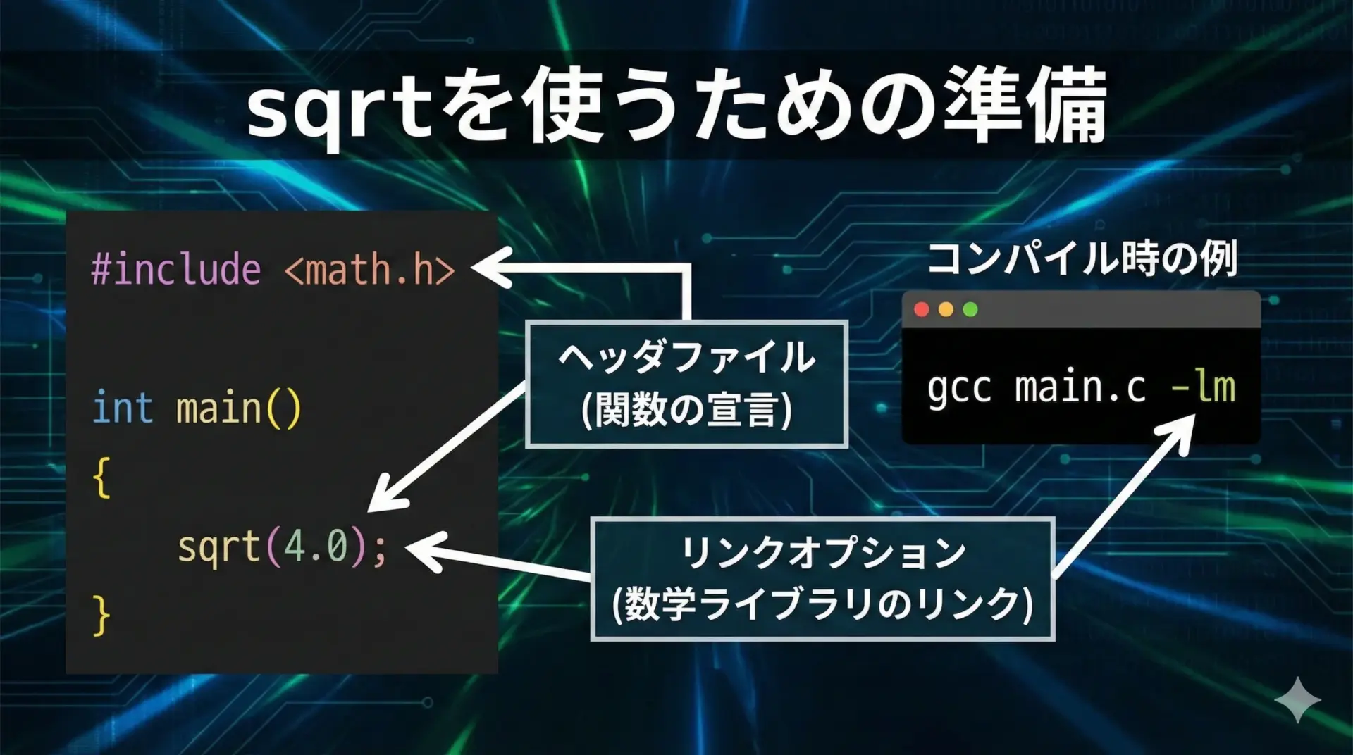 sqrtはC言語における平方根計算の基本関数であり、正しく使えば非常に強力な道具です。